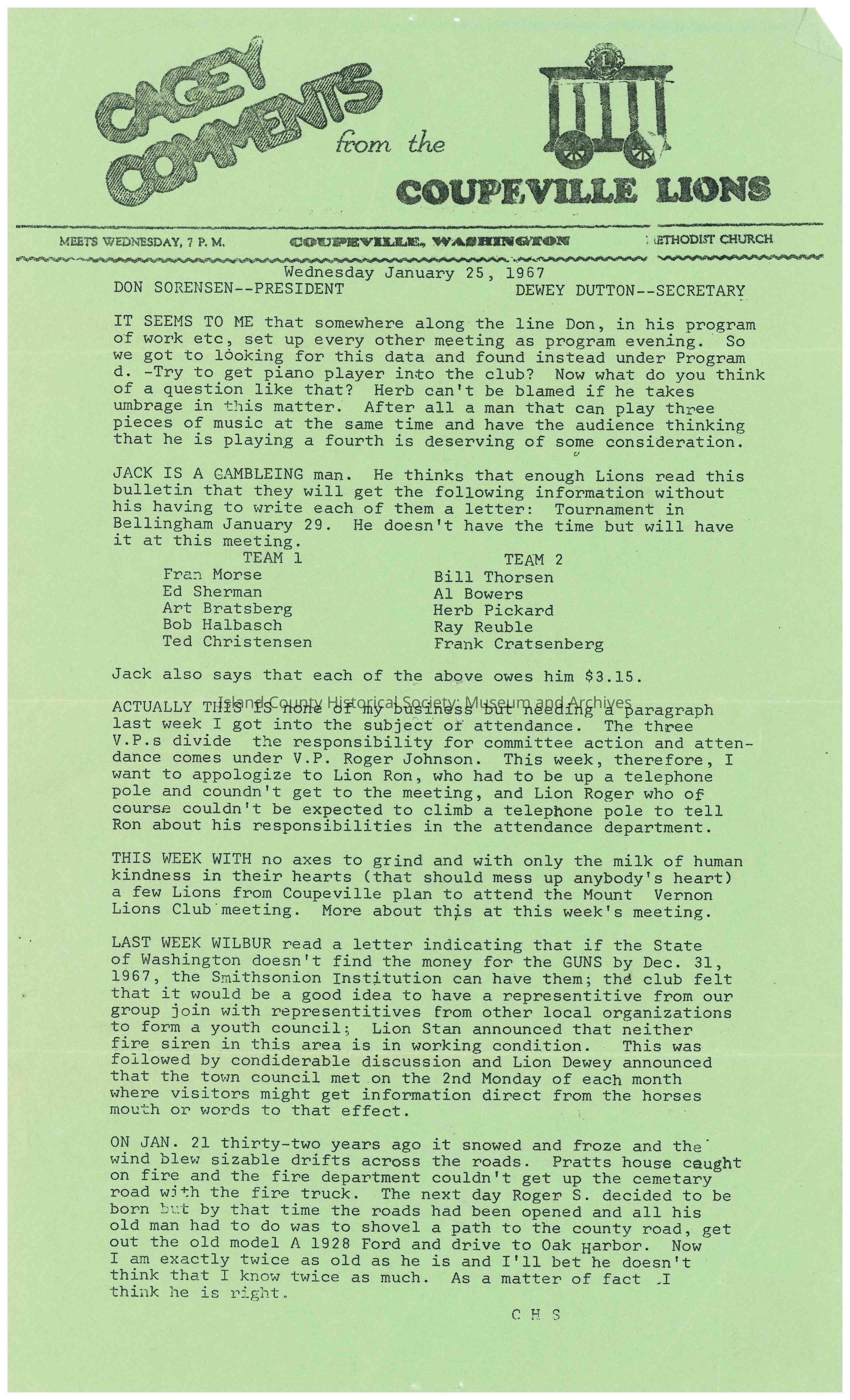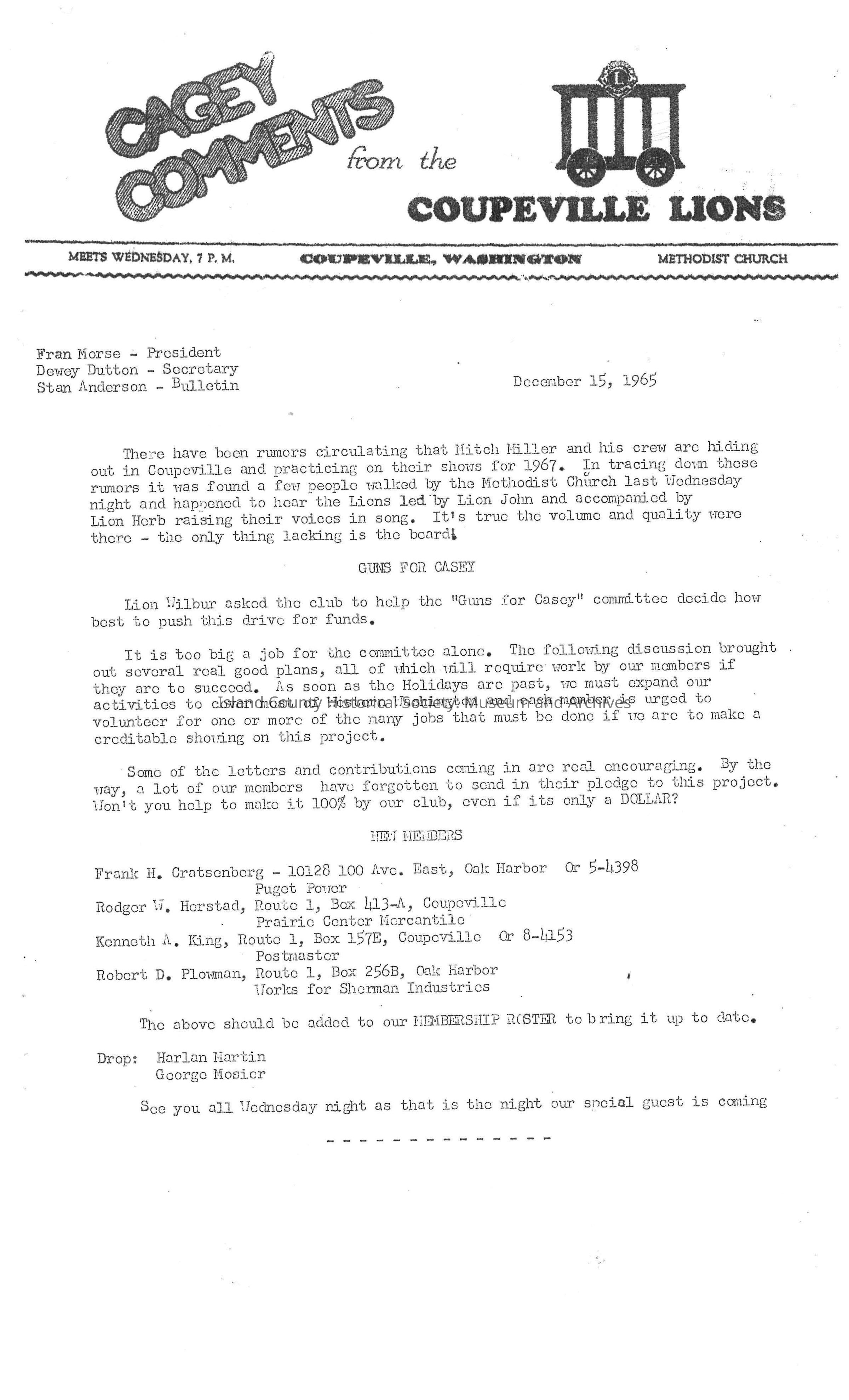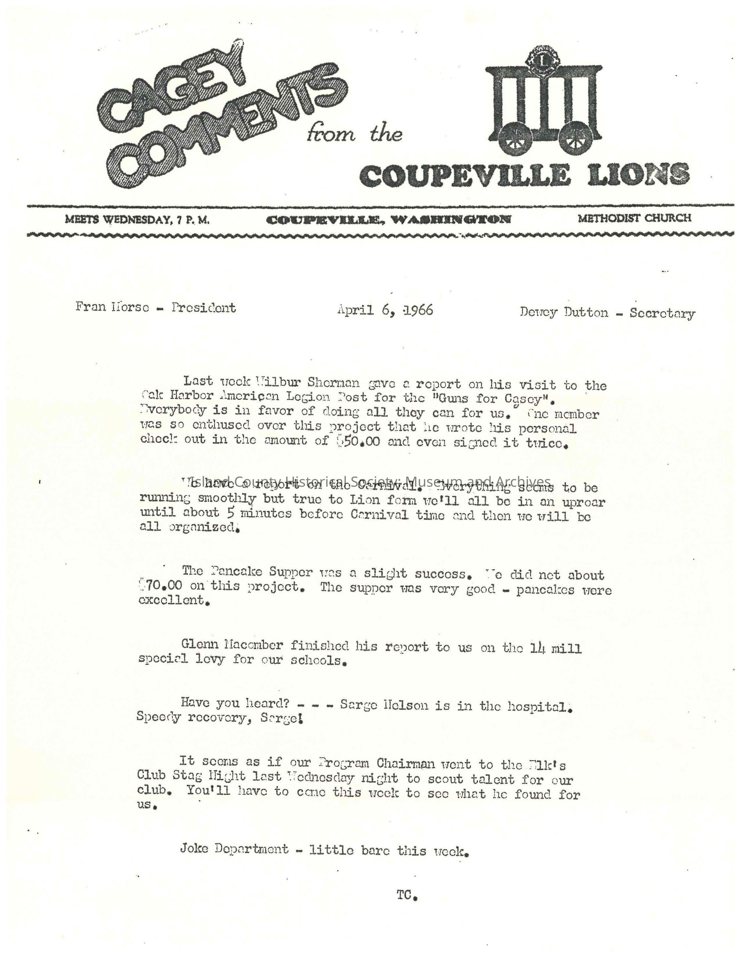 Coupeville Lions Club "Cagey Comments" Newsletters