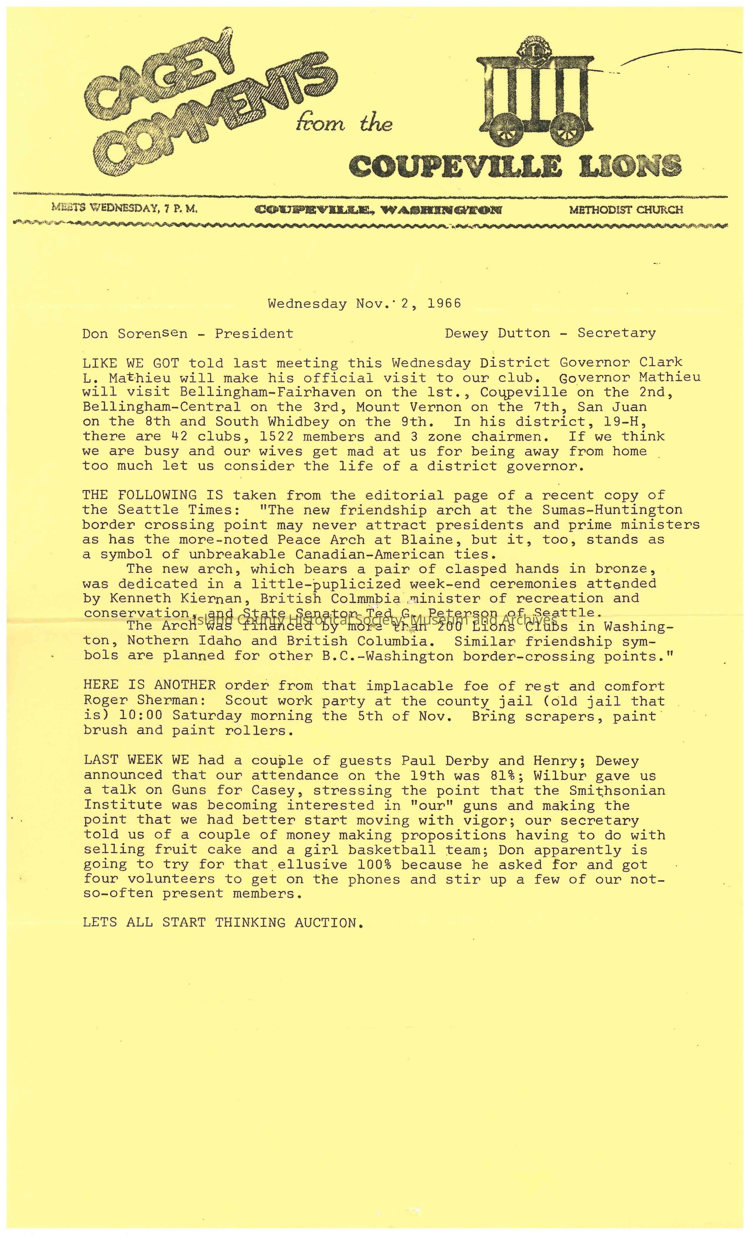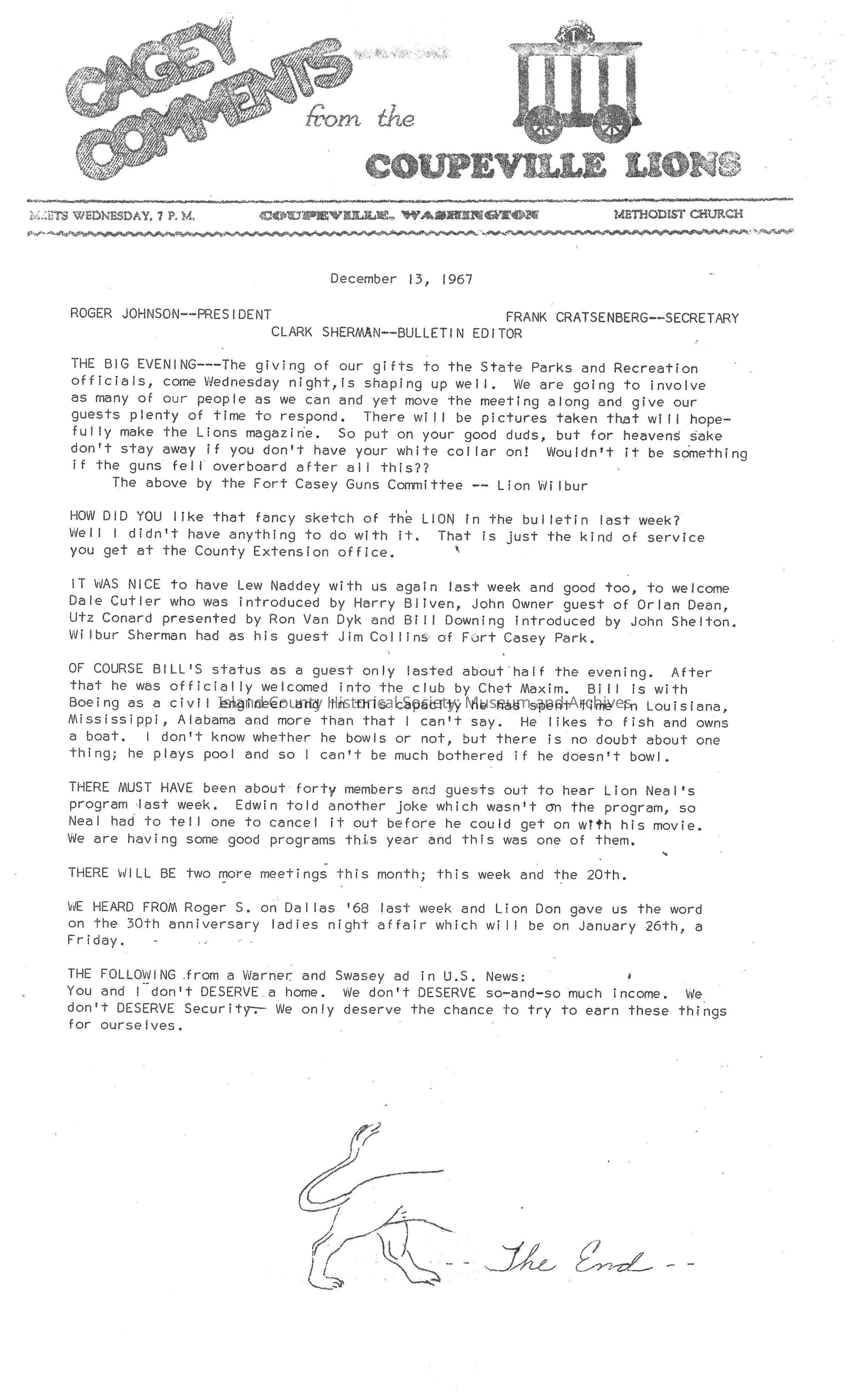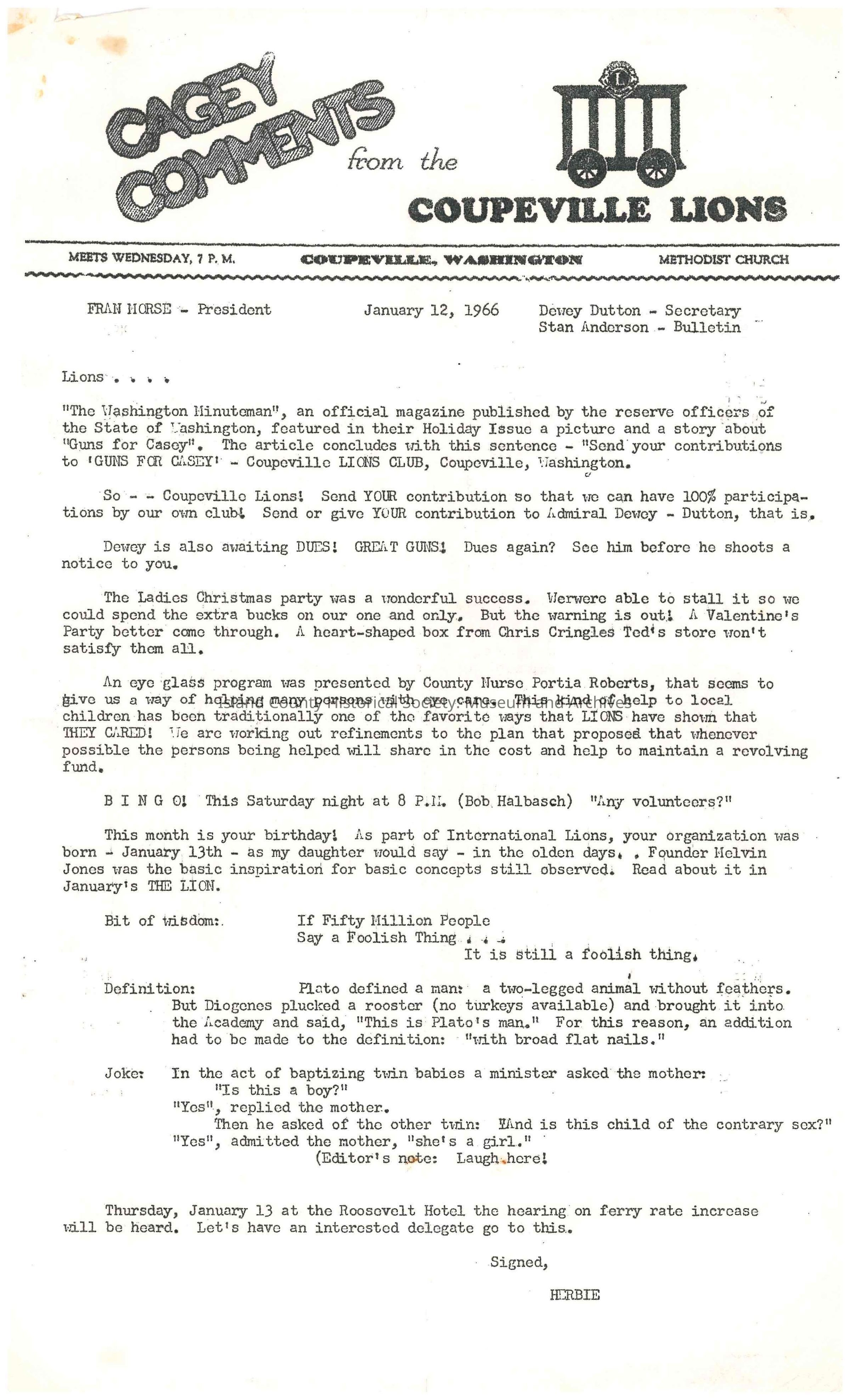 Coupeville Lions Club "Cagey Comments" Newsletters
