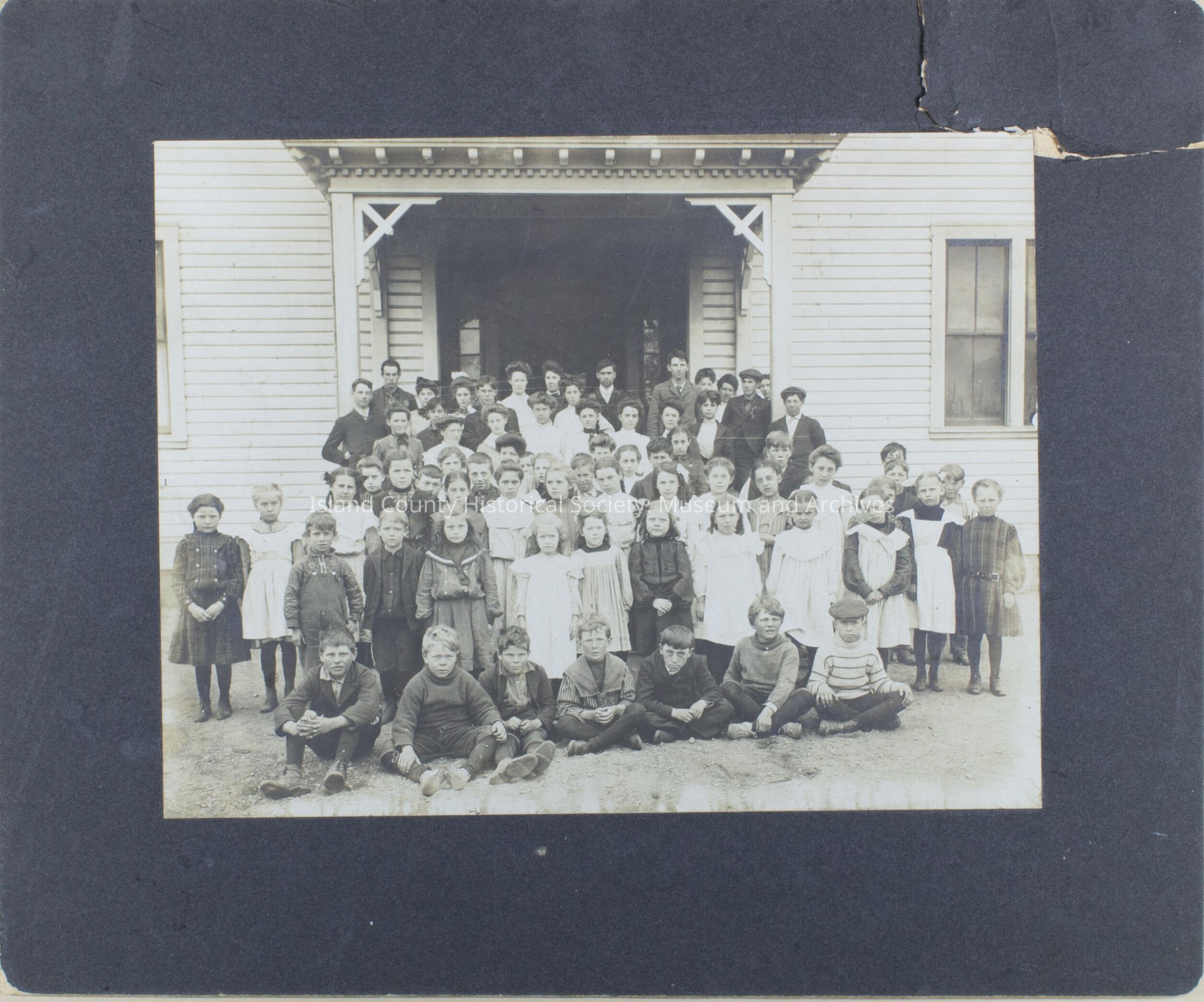 Black and white photograph. 1903 or 1904 Coupeville School at Prairie Center. There is a copy of the photo on the back with numbers on most of the individuals - there is a separate paper with all the names.