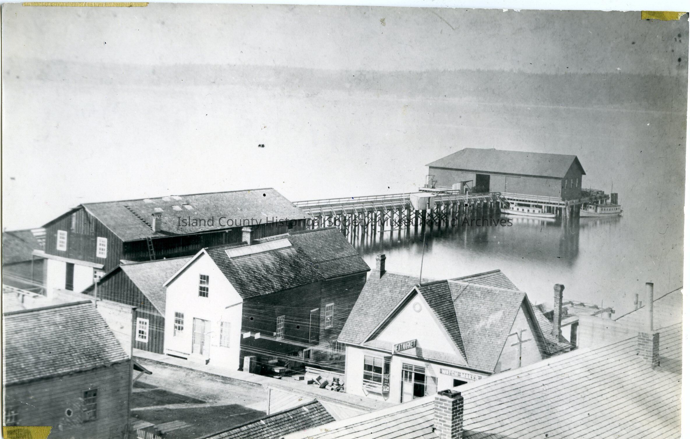Early day Coupeville -- dock, meat market, watch maker, livery stable