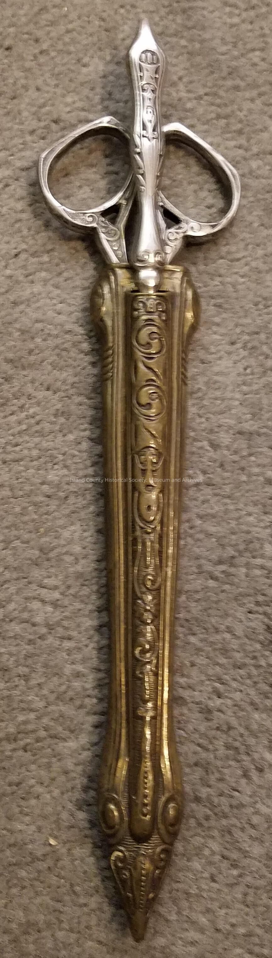 Desk set consisting of letter opener and scissors. Donated by the Jenne family