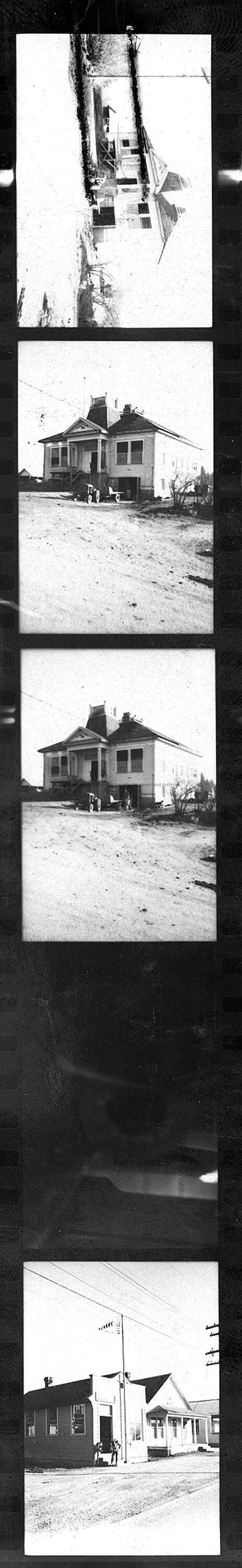 b/w negatives and contact print of skull, wheel, wagon