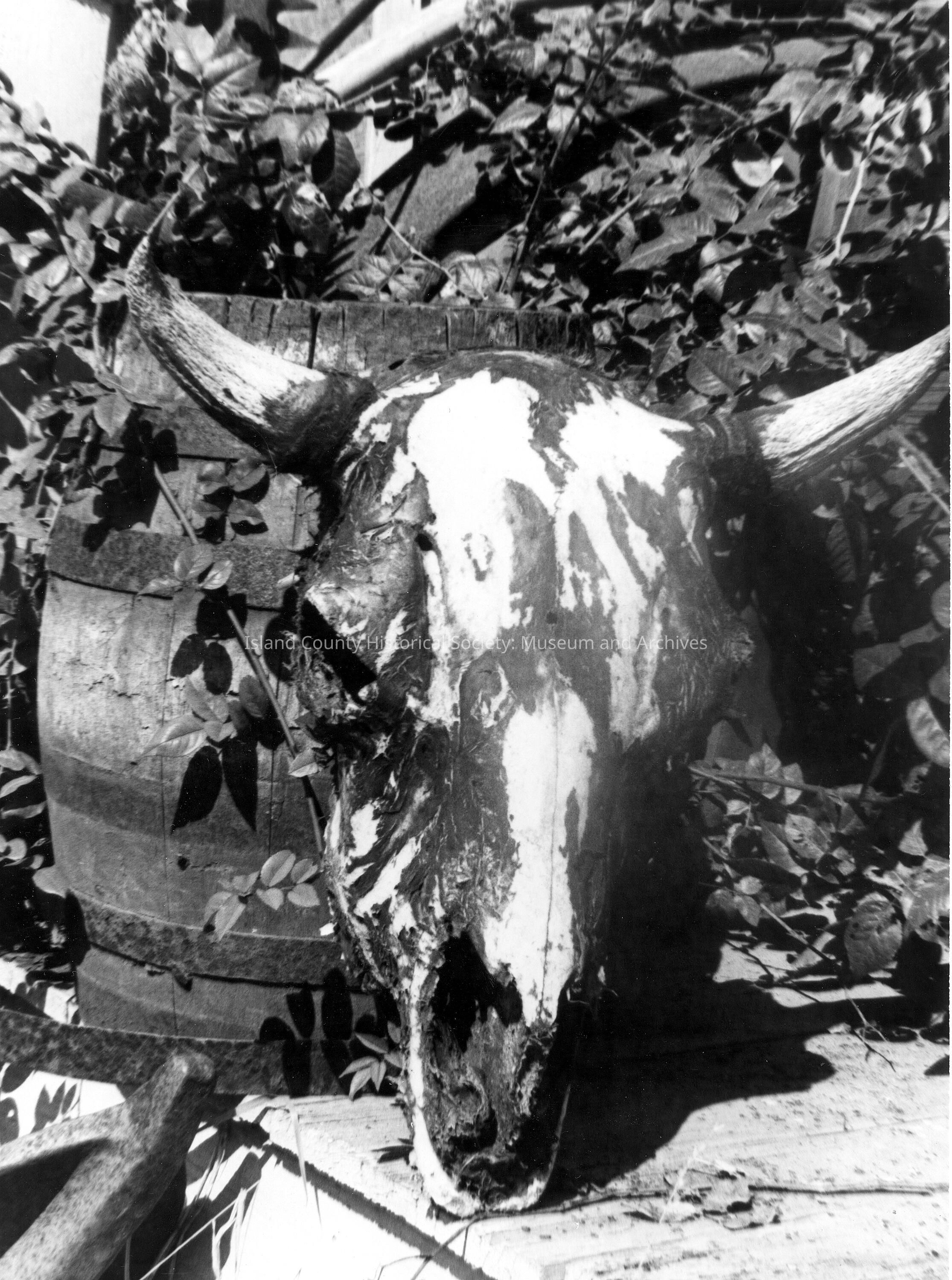 b/w photo of skull and barrel