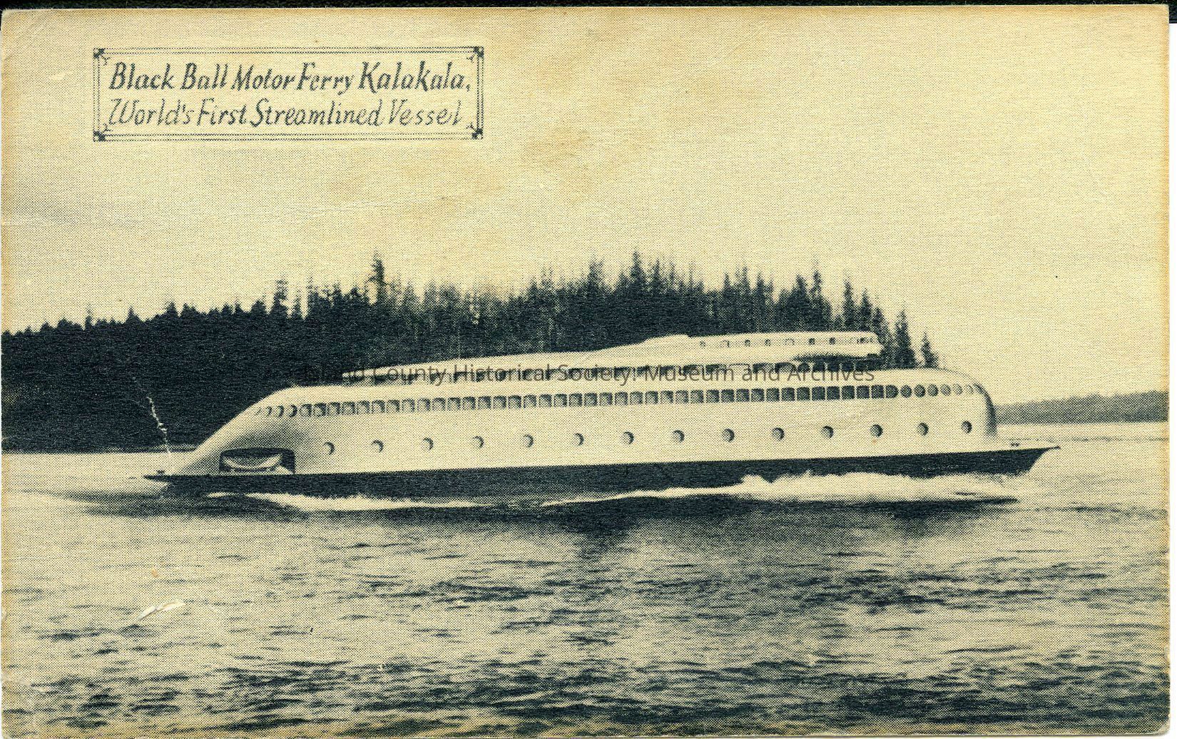 Black Ball Motor Ferry Kalakala (meaning "Flying Bird"). The World's First Streamlined Vessel. It was in service July 2, 1935, between Seattle and BremertonCollection
