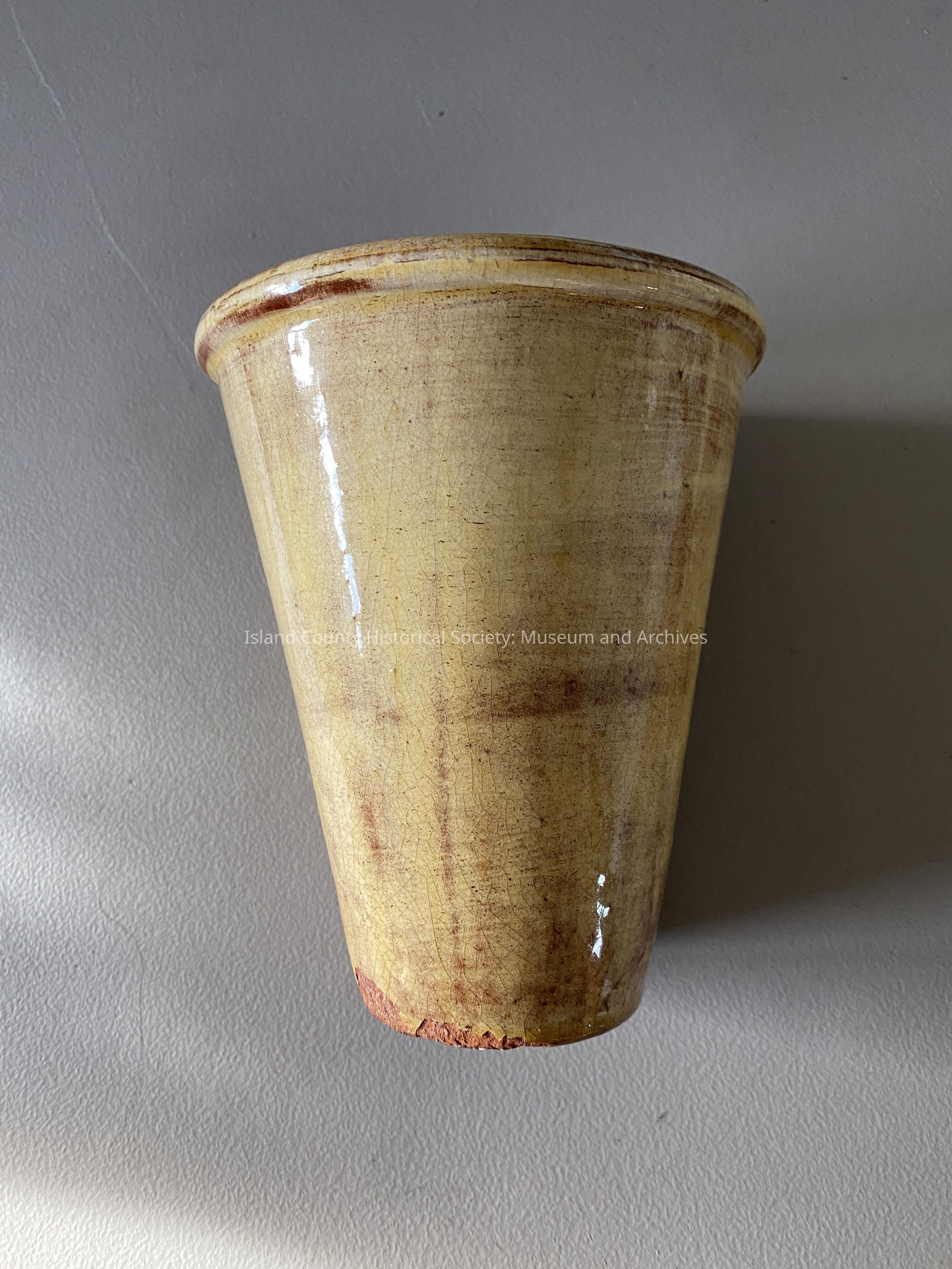 A clay pot, cone shaped, with a yellow-green glaze over top. This was used as a prop in the film Practical Magic