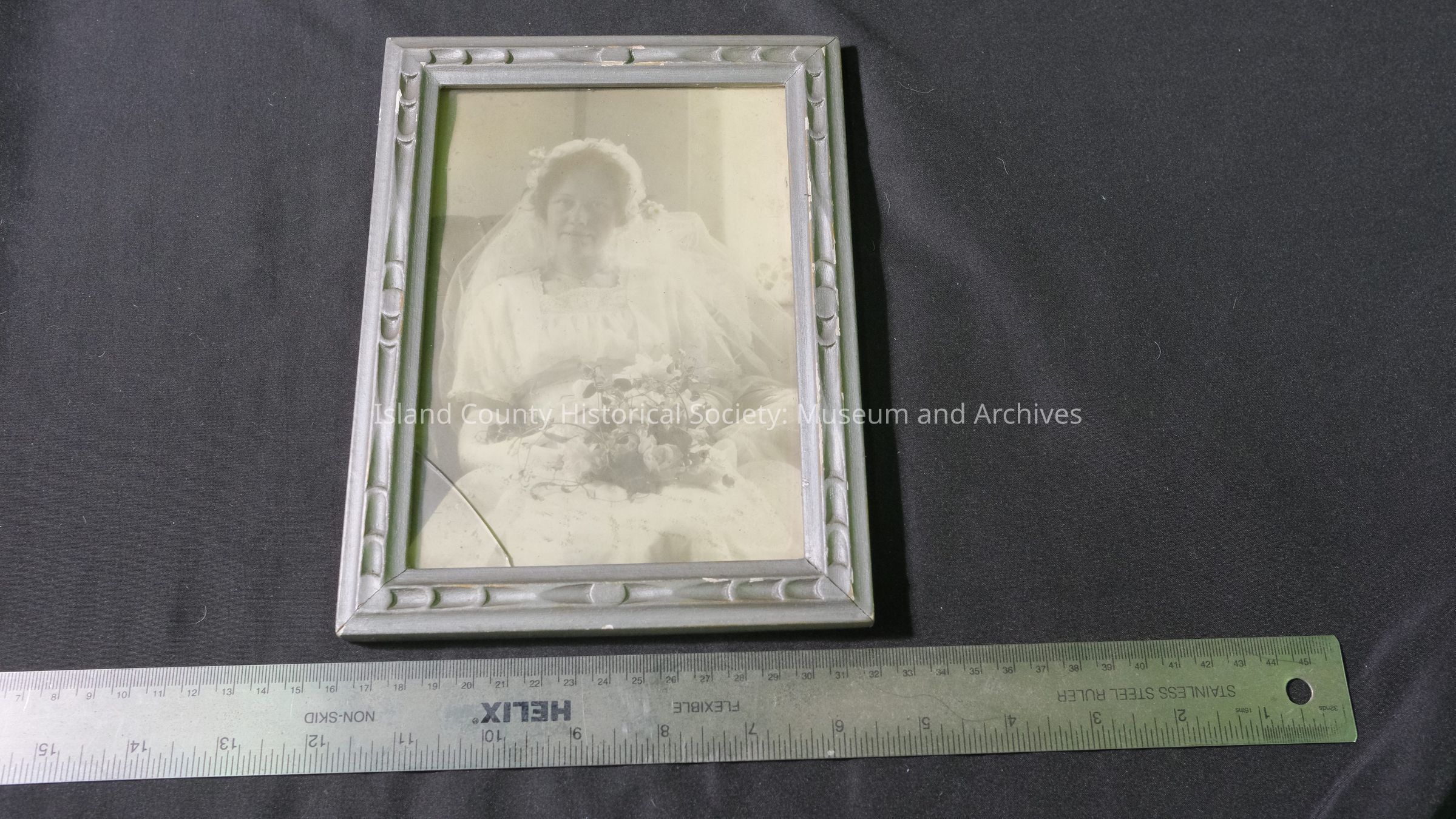 Gray wood frame; Picture frame for wedding picture of Maribel Pratt