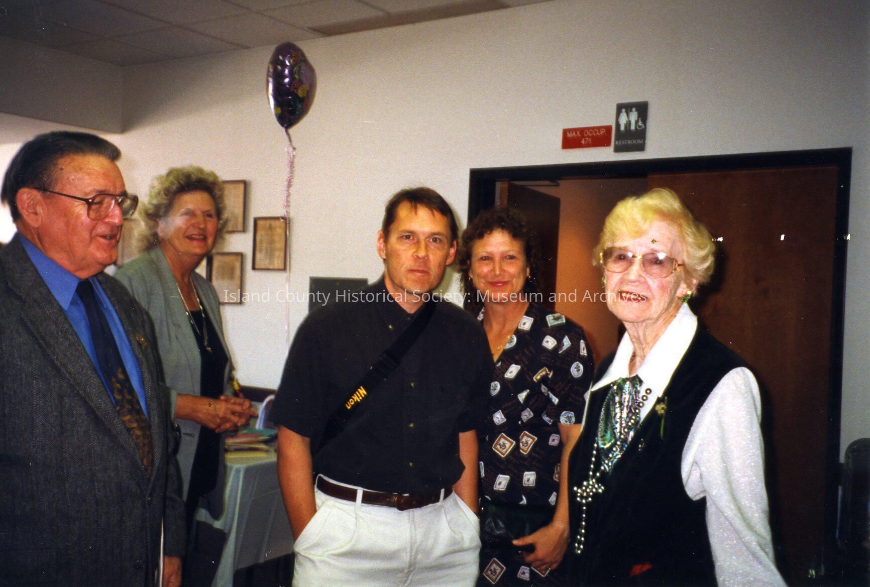 A color photo of Dorothy Neil standing with a group of people in a Church