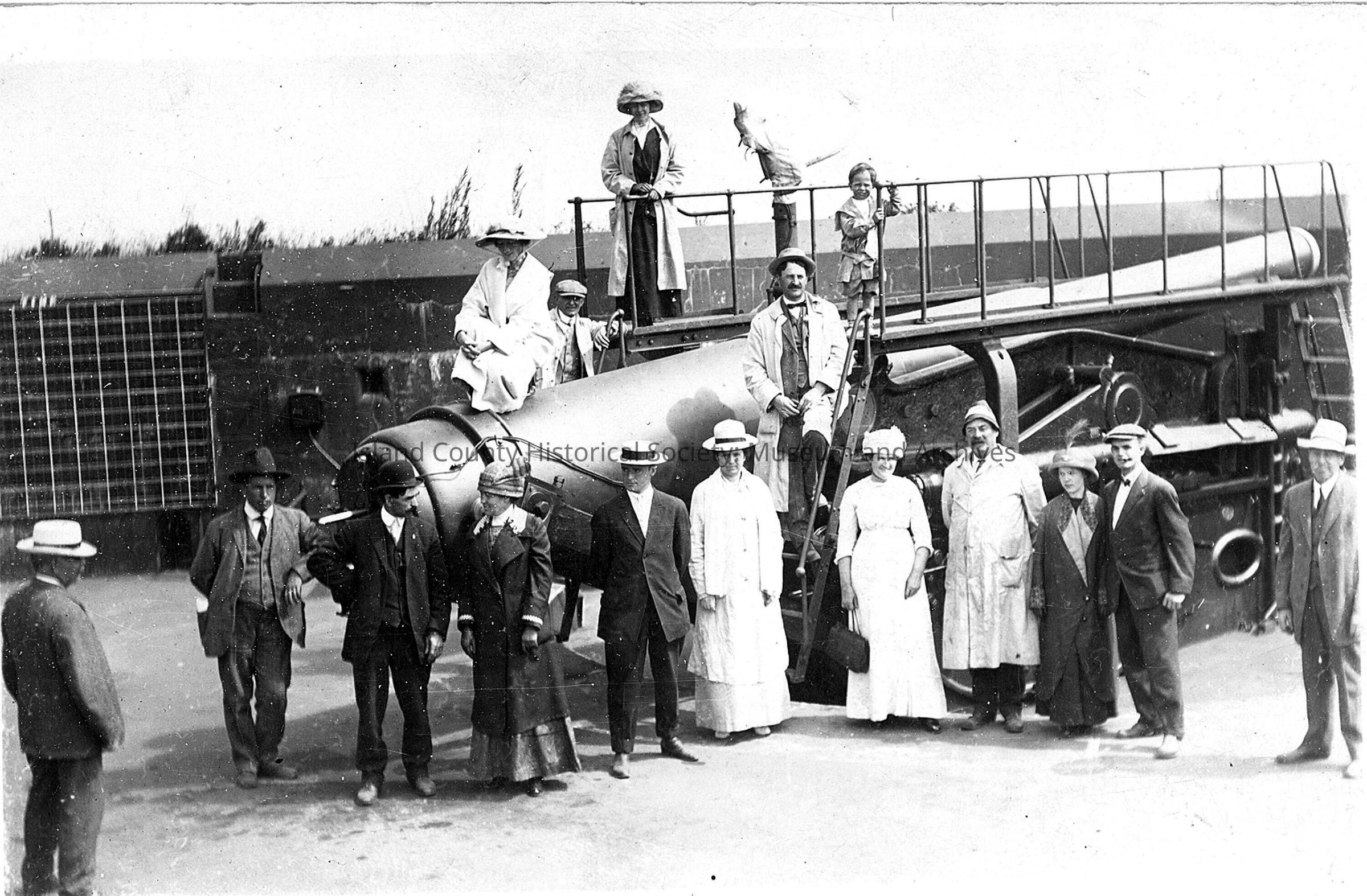 b/w postcard people in front of guns