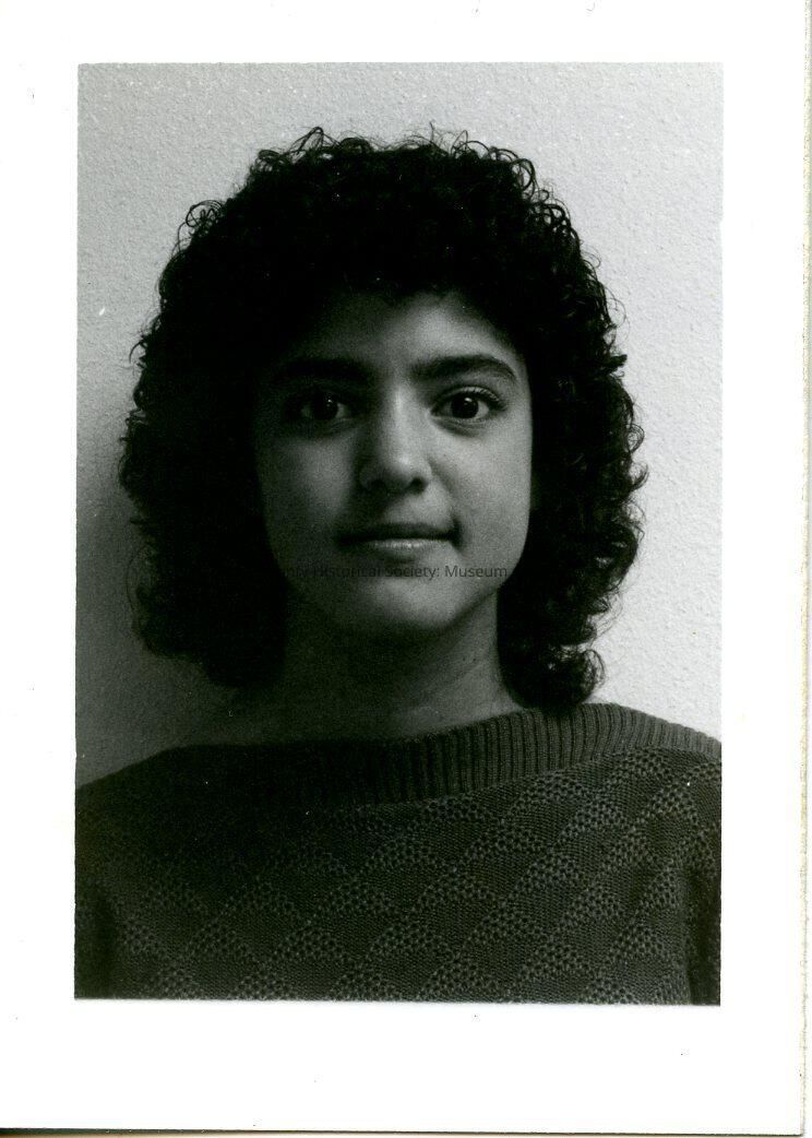A black and white photograph of a woman with dark hair. The back of the photo reads "Amber Hawkins 2704 Crecent Acres Rd. Oak Harbor Wash 98277"