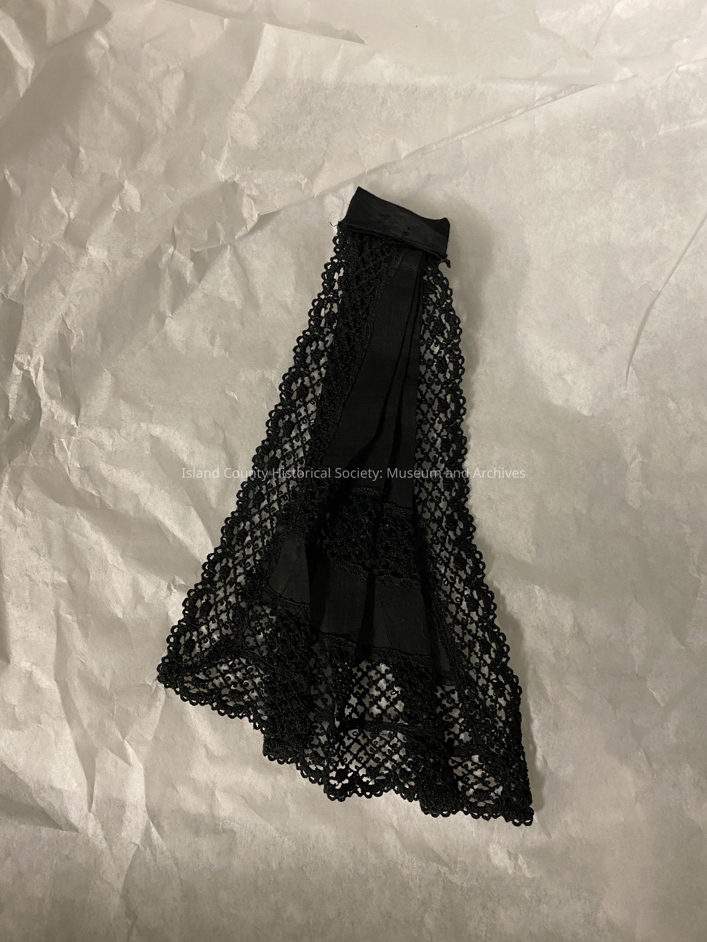 Black Pique Jabot, a decorative collar like clothing piece, with lace trim.
