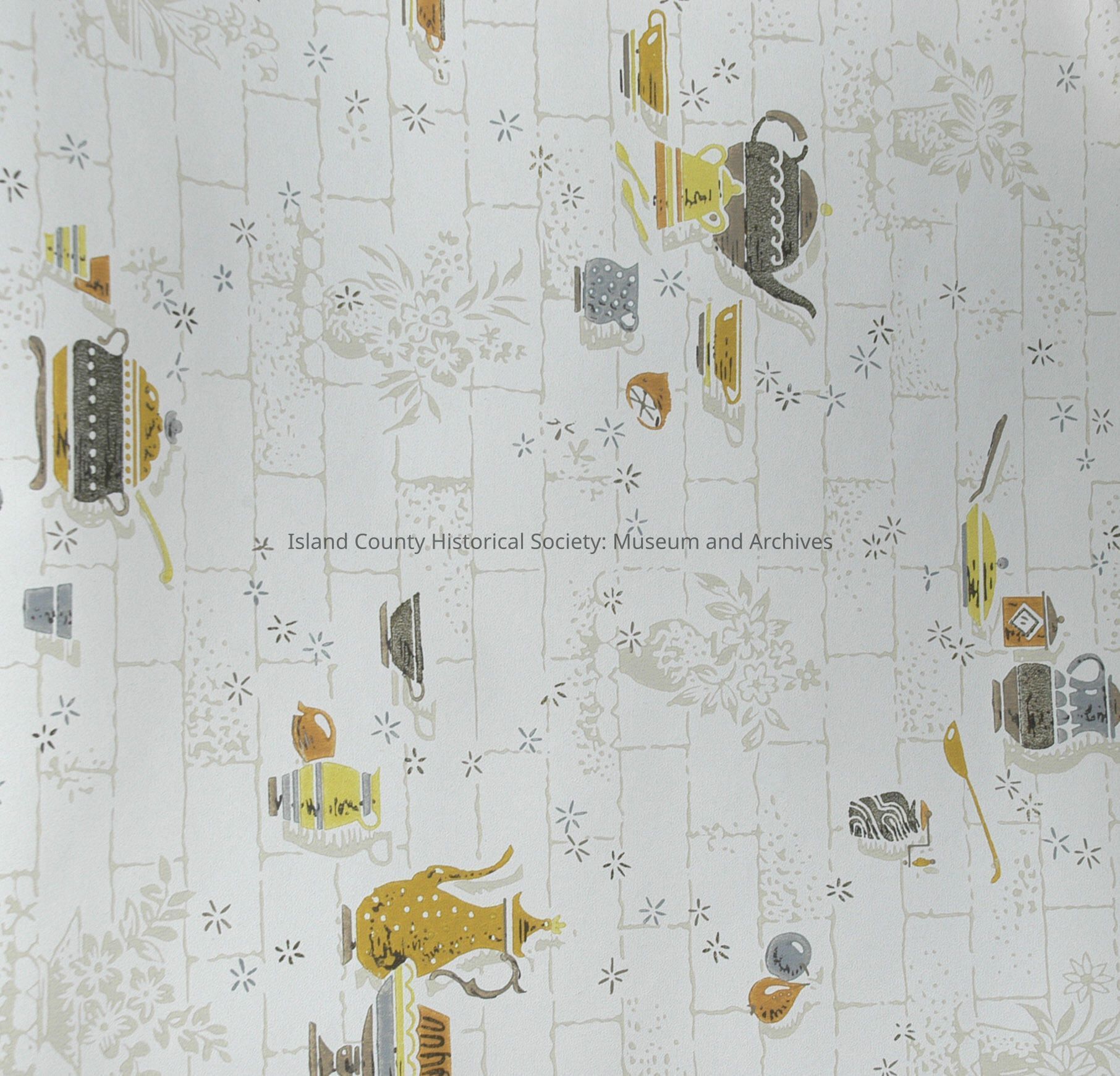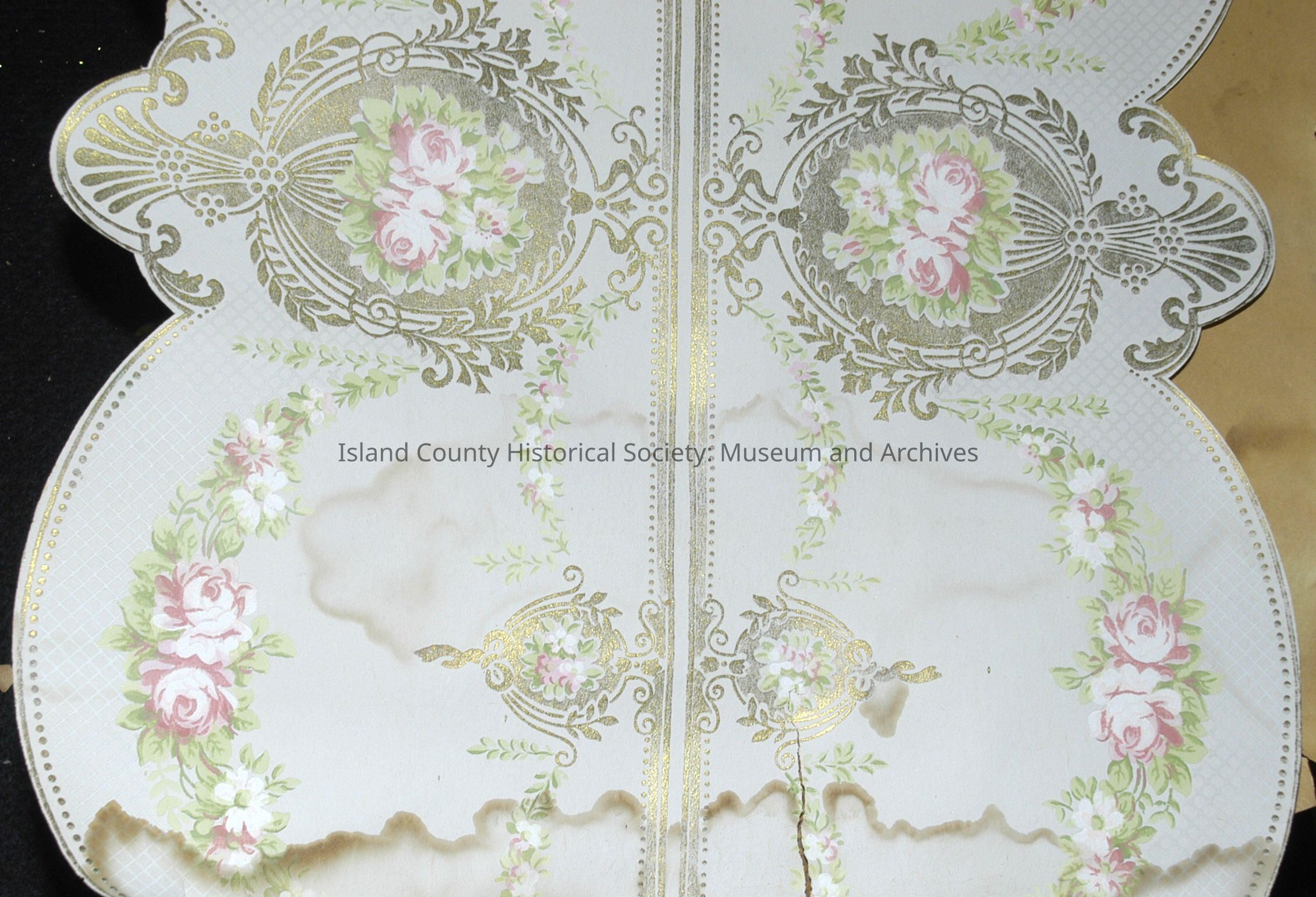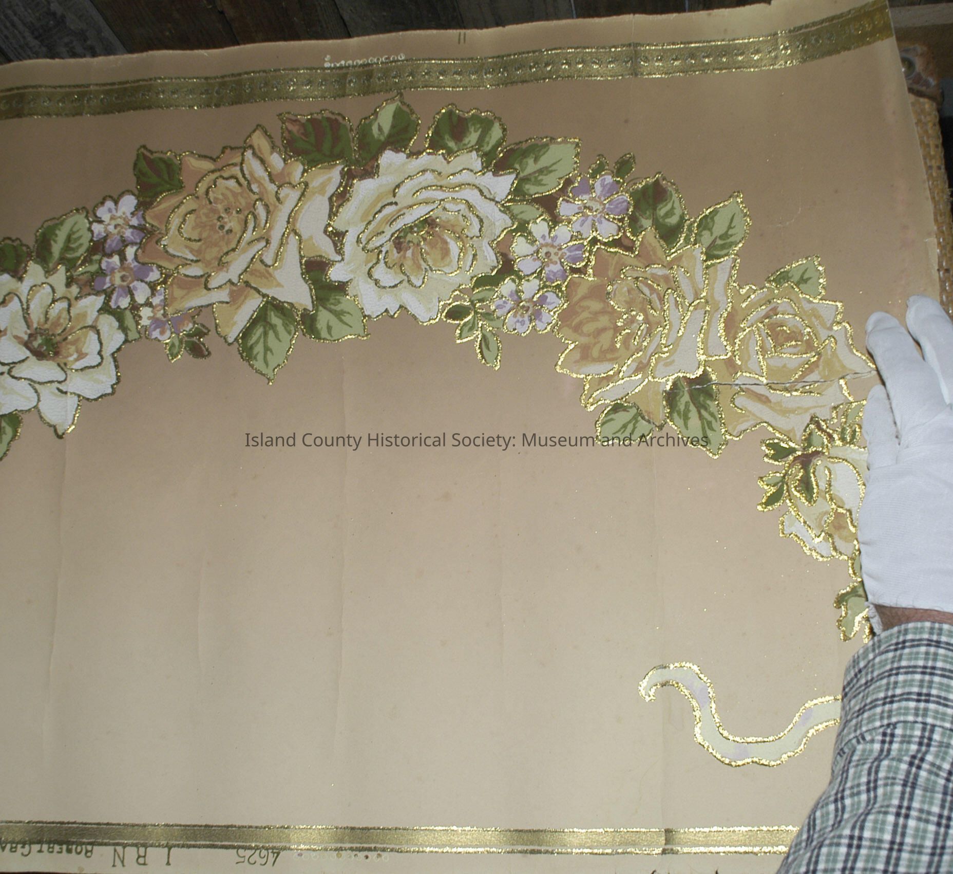 Rose pattern with gold trim. Part of collection, three rolls Victorian wall paper. [images c - g are added in here although not individually entered yet.]