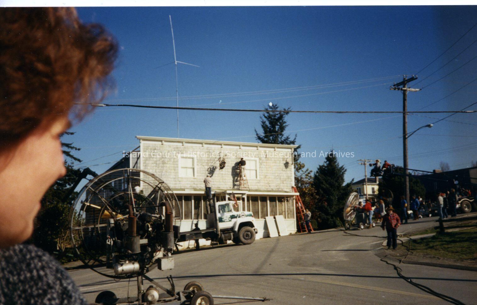 The Coupeville site of the Twentieth Century Fox film "The War of the Roses", released in December 1989. This view is of an old unused building on Main Street, given a false front for use in the film. The building no longer exists. The lot is at the intersection of Coveland and Main Streets. There are no notes on the reverse of the photo.
