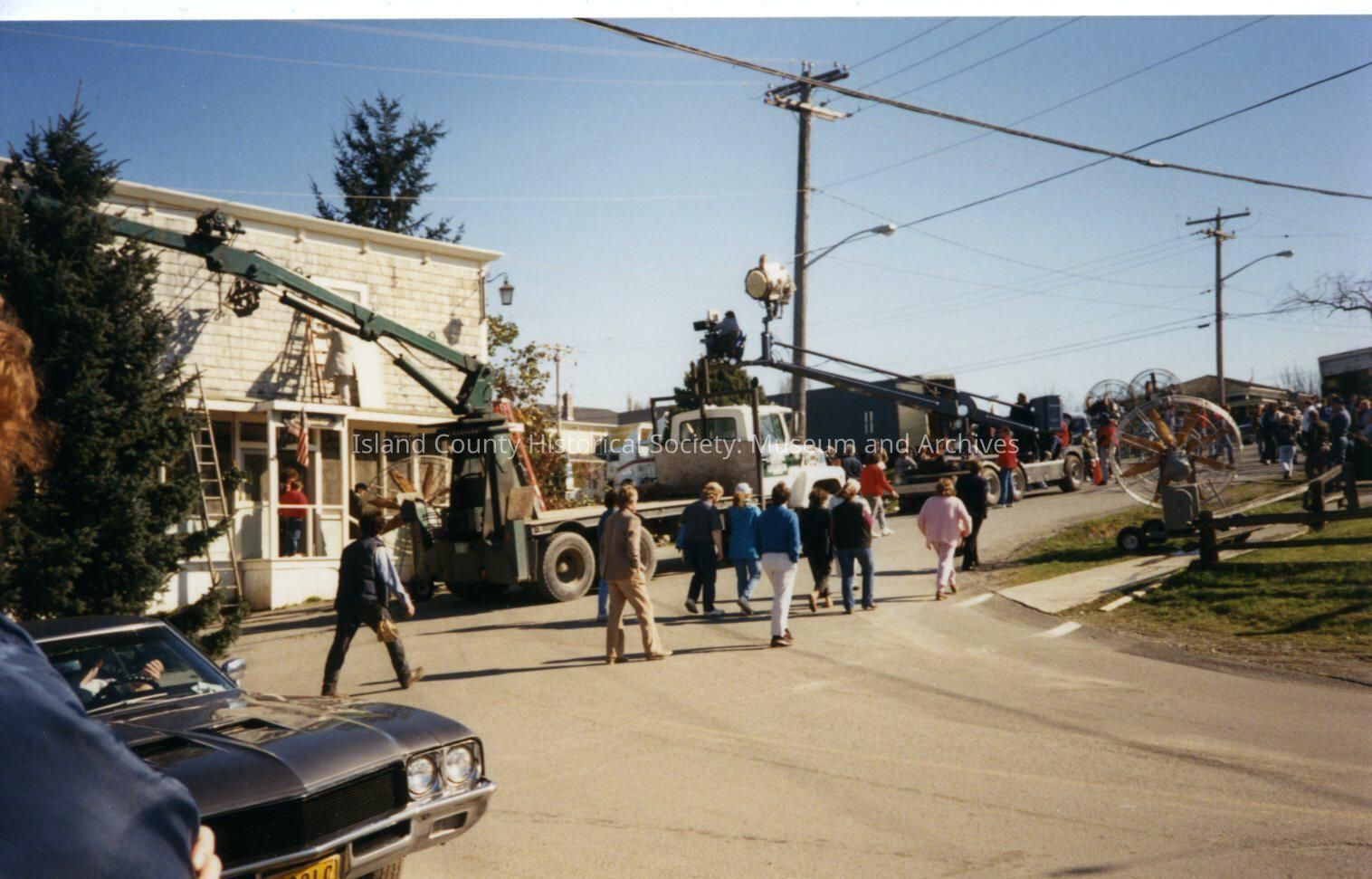 The Coupeville site of the Twentieth Century Fox film "The War of the Roses", released in December 1989. This view faces the intersection of Main Street, left to right uphill, and Coveland Street (foreground right) . The old building was given a 'face lift' for the film and was later razed. There are no notes on the reverse.Made/Created