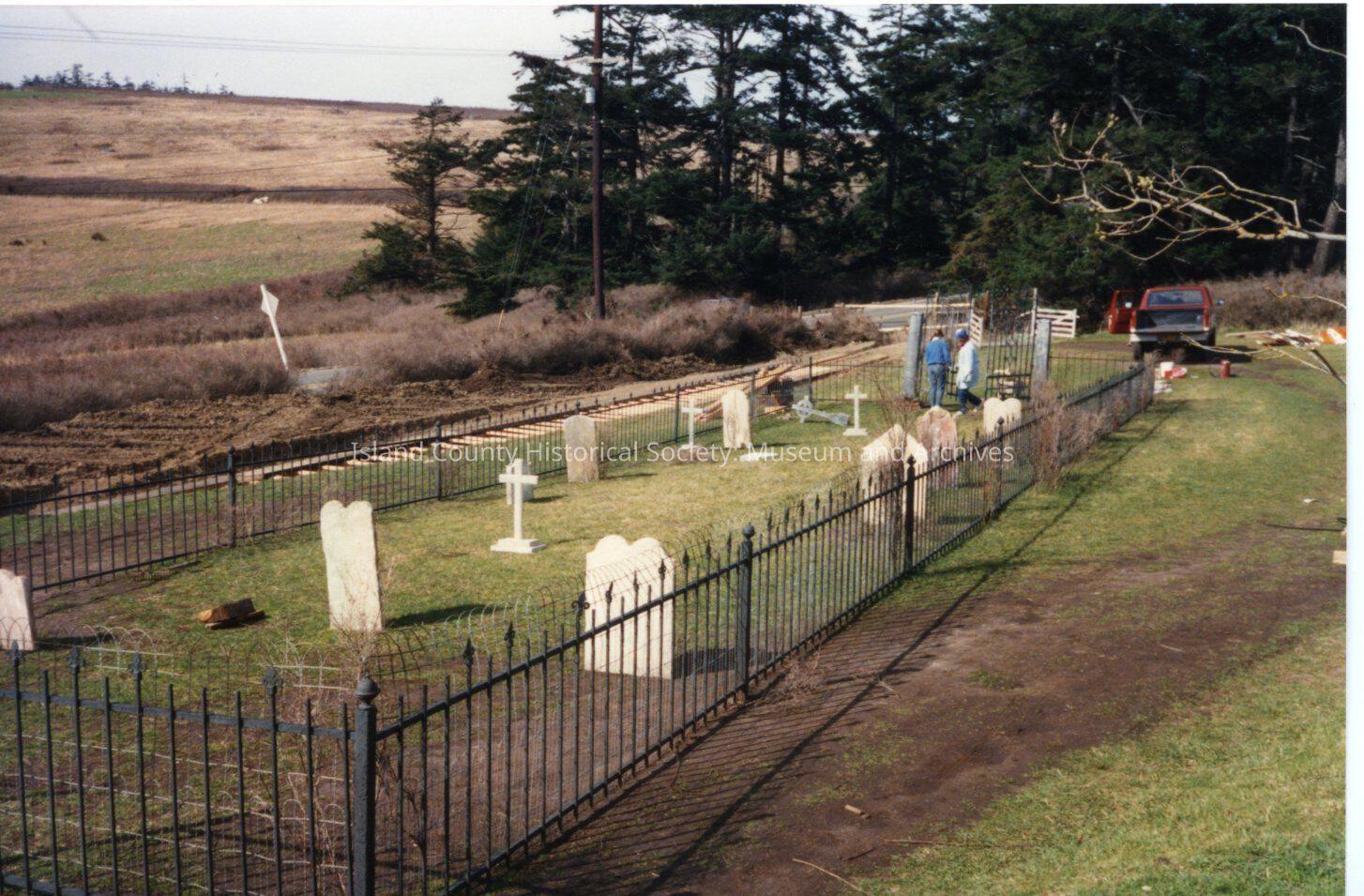 The Coupeville site of the Twentieth Century Fox film "The War of the Roses", released in December 1989. This view shows a false cemetery set up for filming. The 'cemetery' was set up near the old San de Fuca Schoolhouse. See 2018.052.046. There are no notes on the reverse of the photo.