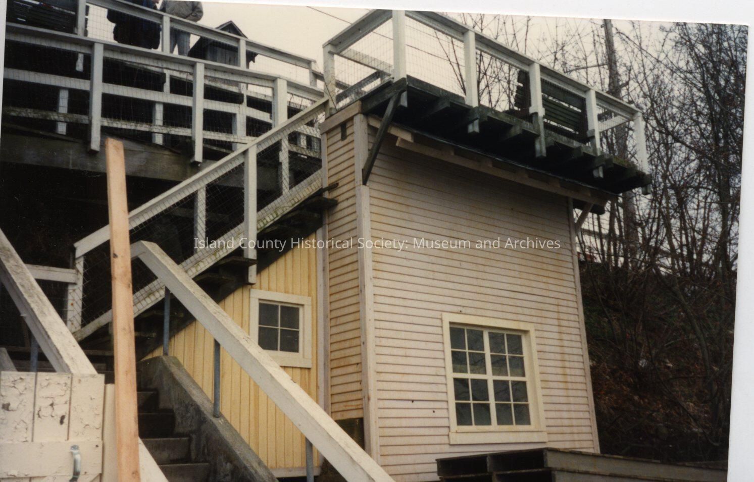 The Coupeville site of the Twentieth Century Fox film "The War of the Roses", released in December 1989. This photo shows improvements made to the waterfront, from the water's edge. There are no notes on the reverse of the photo: