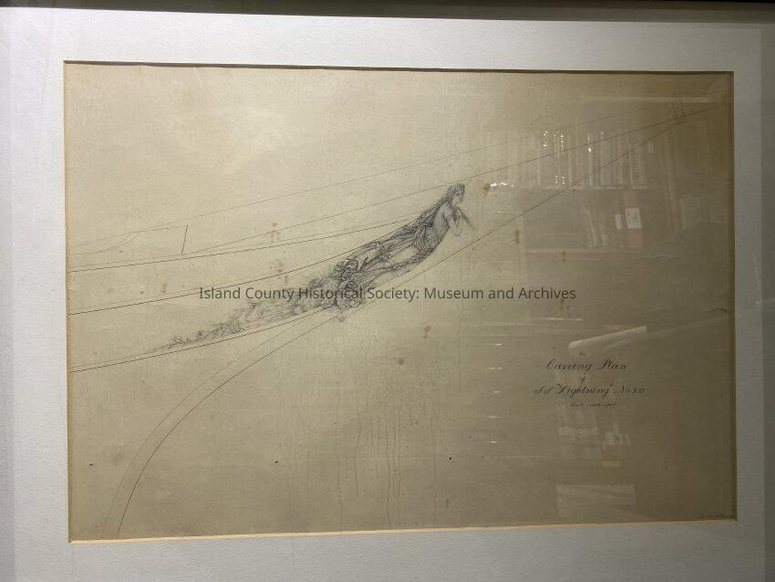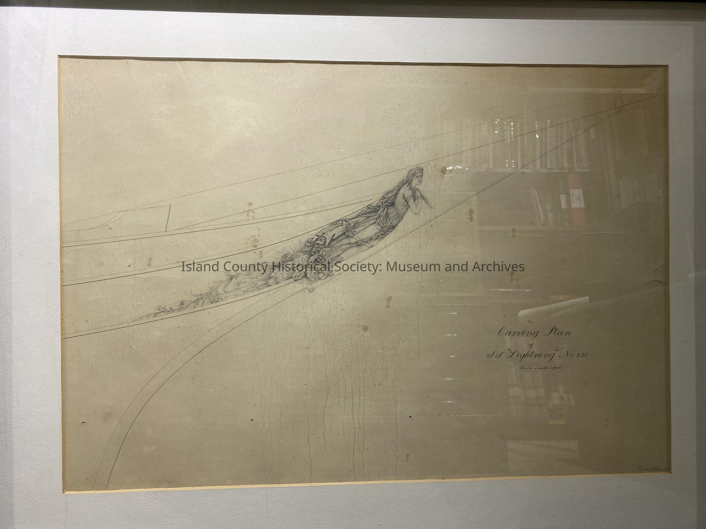 A very large framed Carving Plan of the S.S. Lightning No 351. Scale 1 inch = 1 foot. Drawn in pencil on paper. Paper is water stained and yellowing.Collection