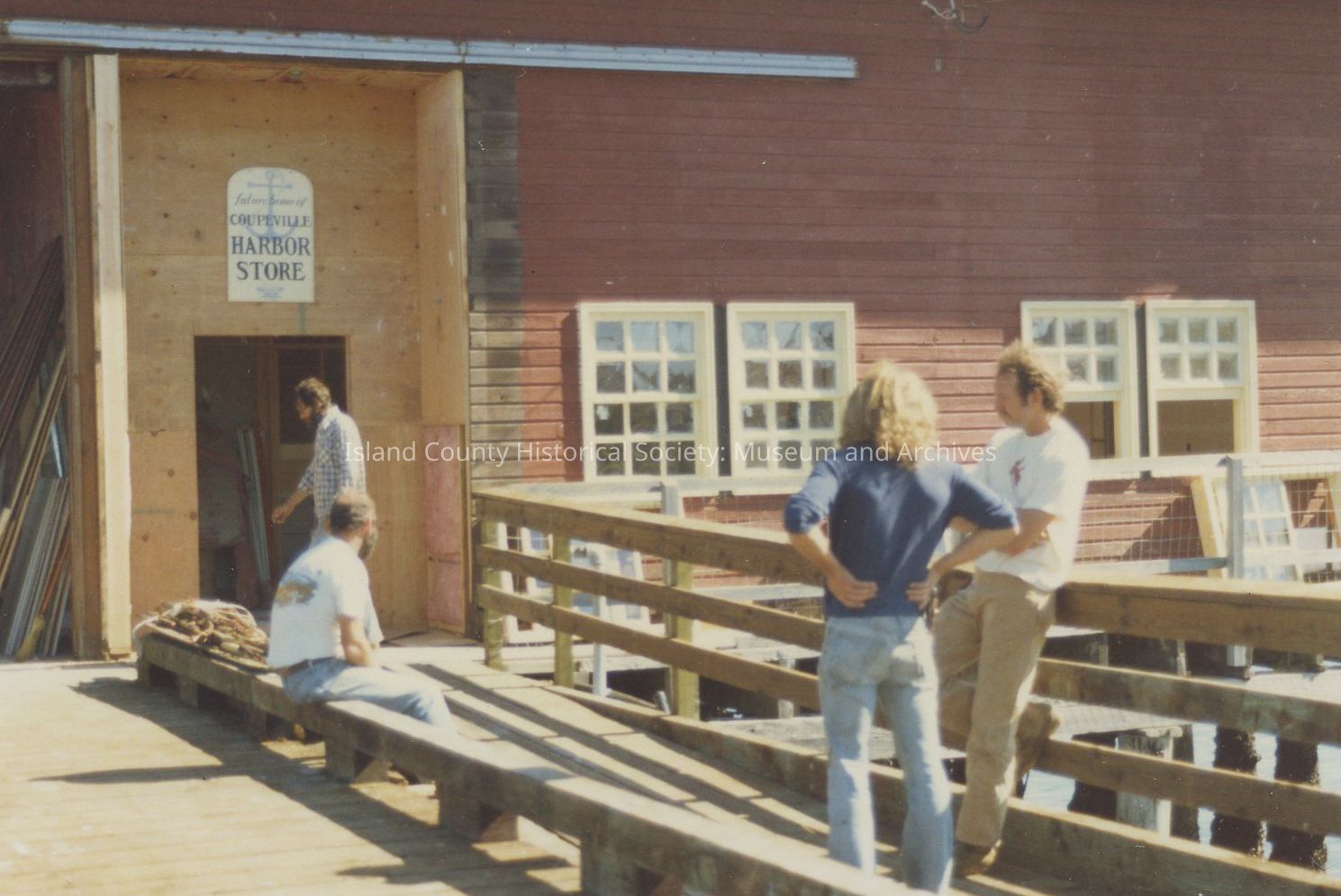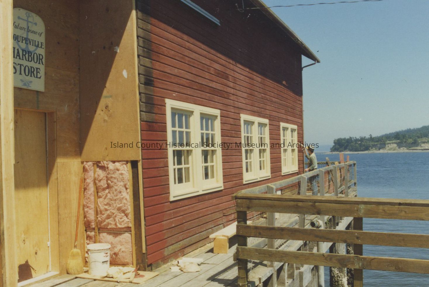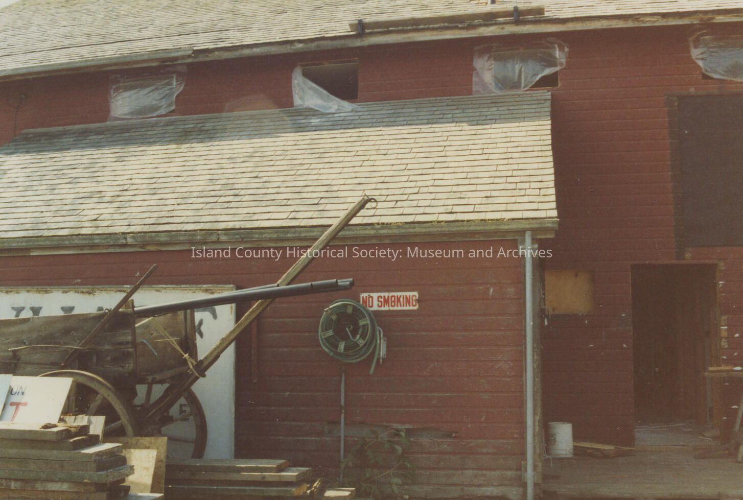 A color photograph of the side of the Coupeville Wharf, with a sign that says No Smoking.