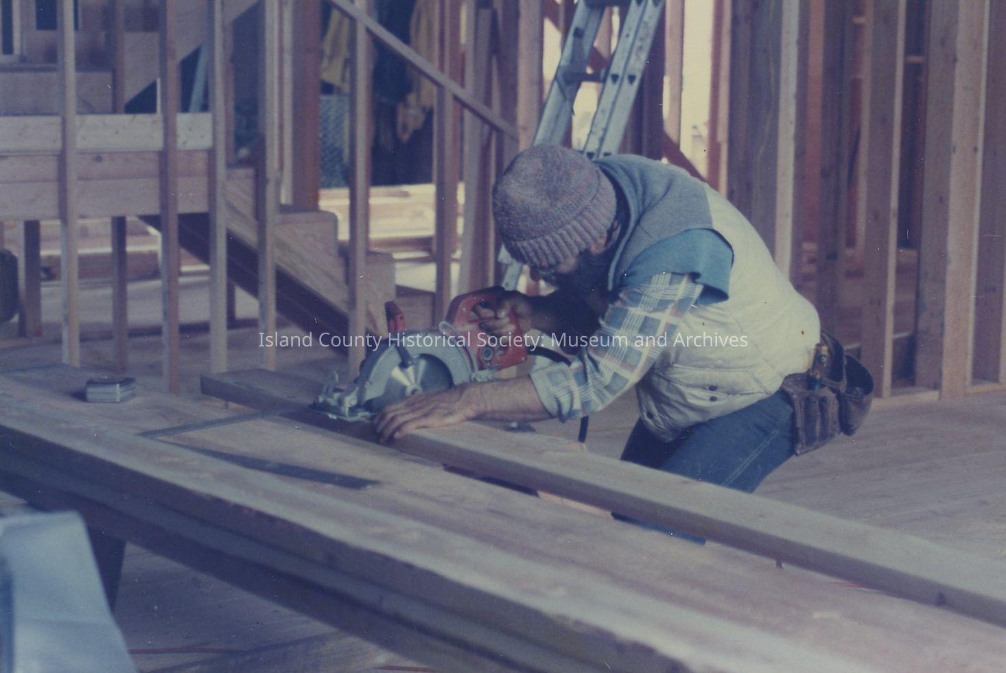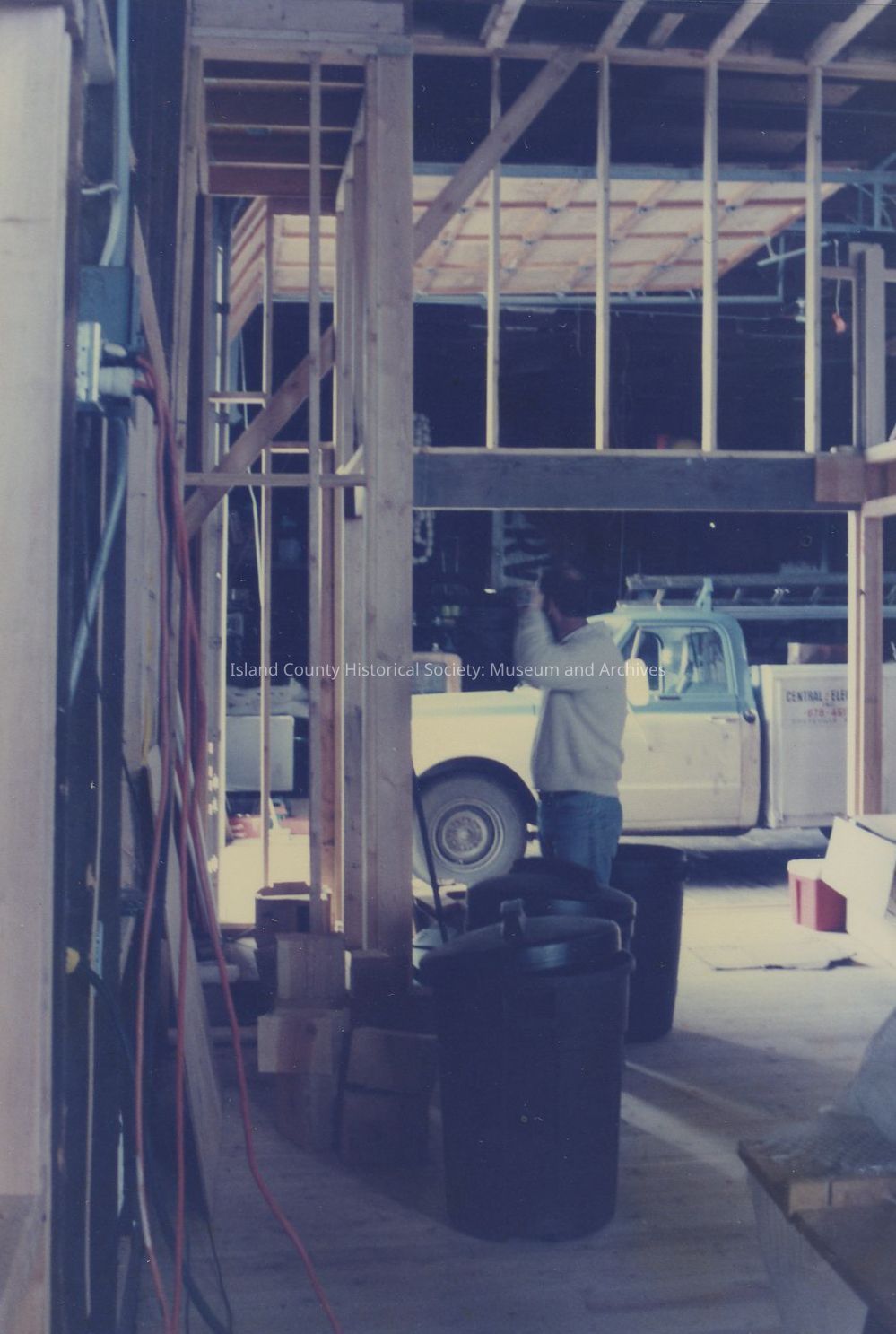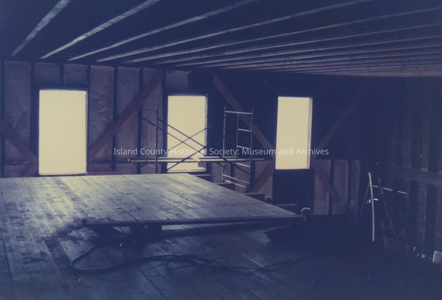 A color photograph of the side of the Coupeville Wharf, with a sign that says No Smoking.
