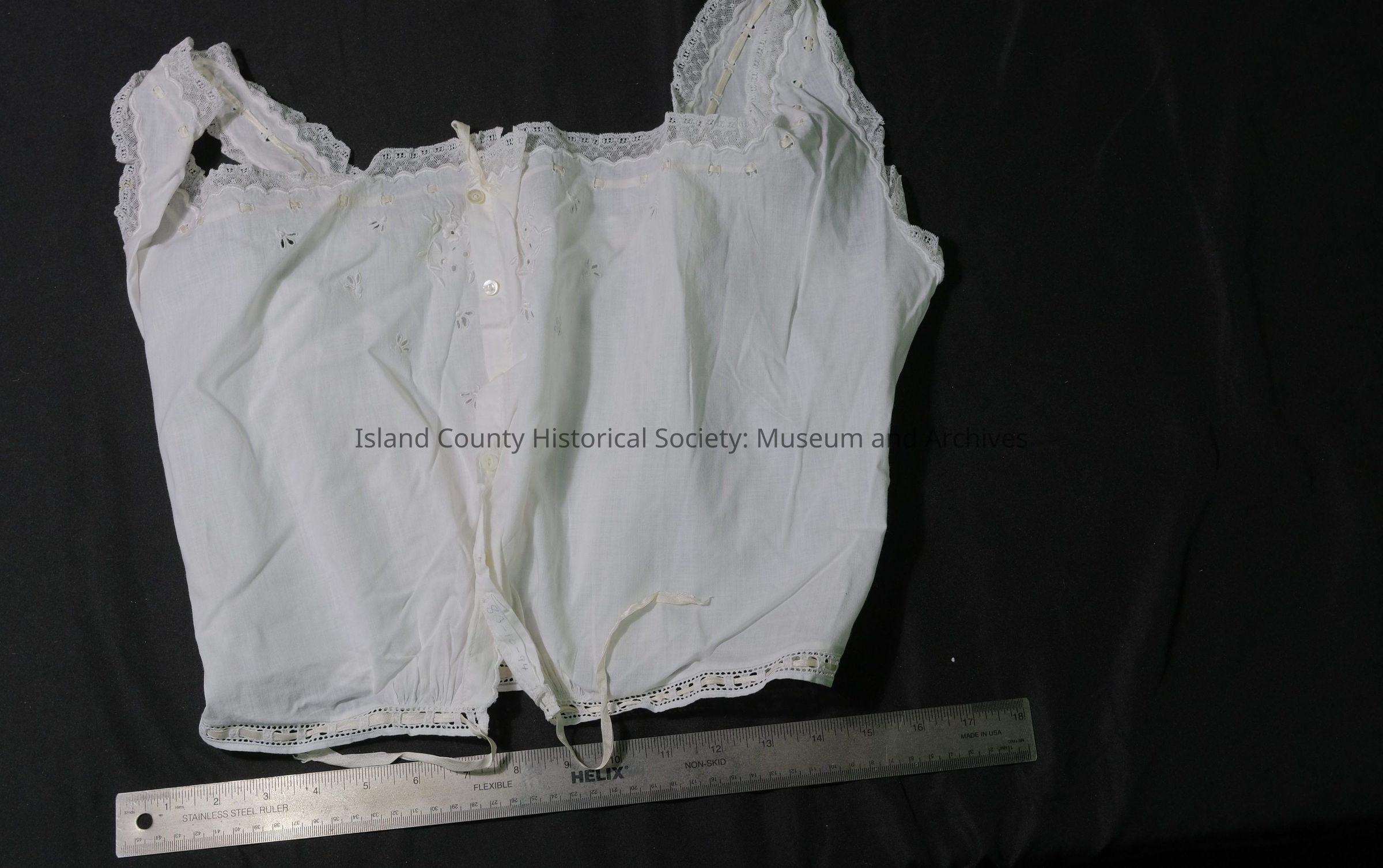 Skirt or petticoat worn by Ethel Libbey, white with lace embroidery