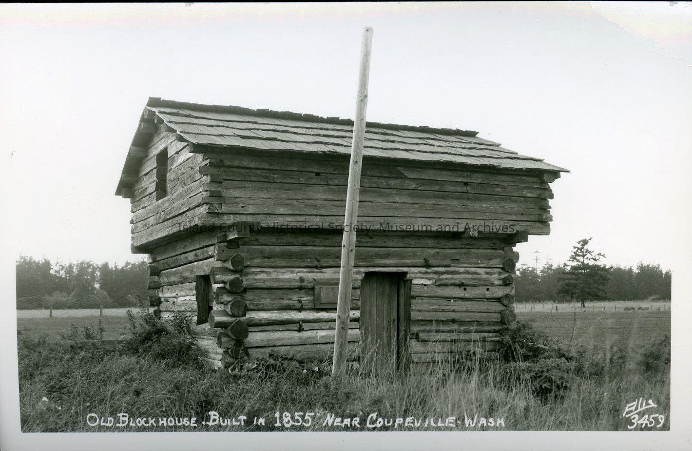 Postcard depicting Davis Blockhouse after its restoration in 1930. Photo c. 1940s.