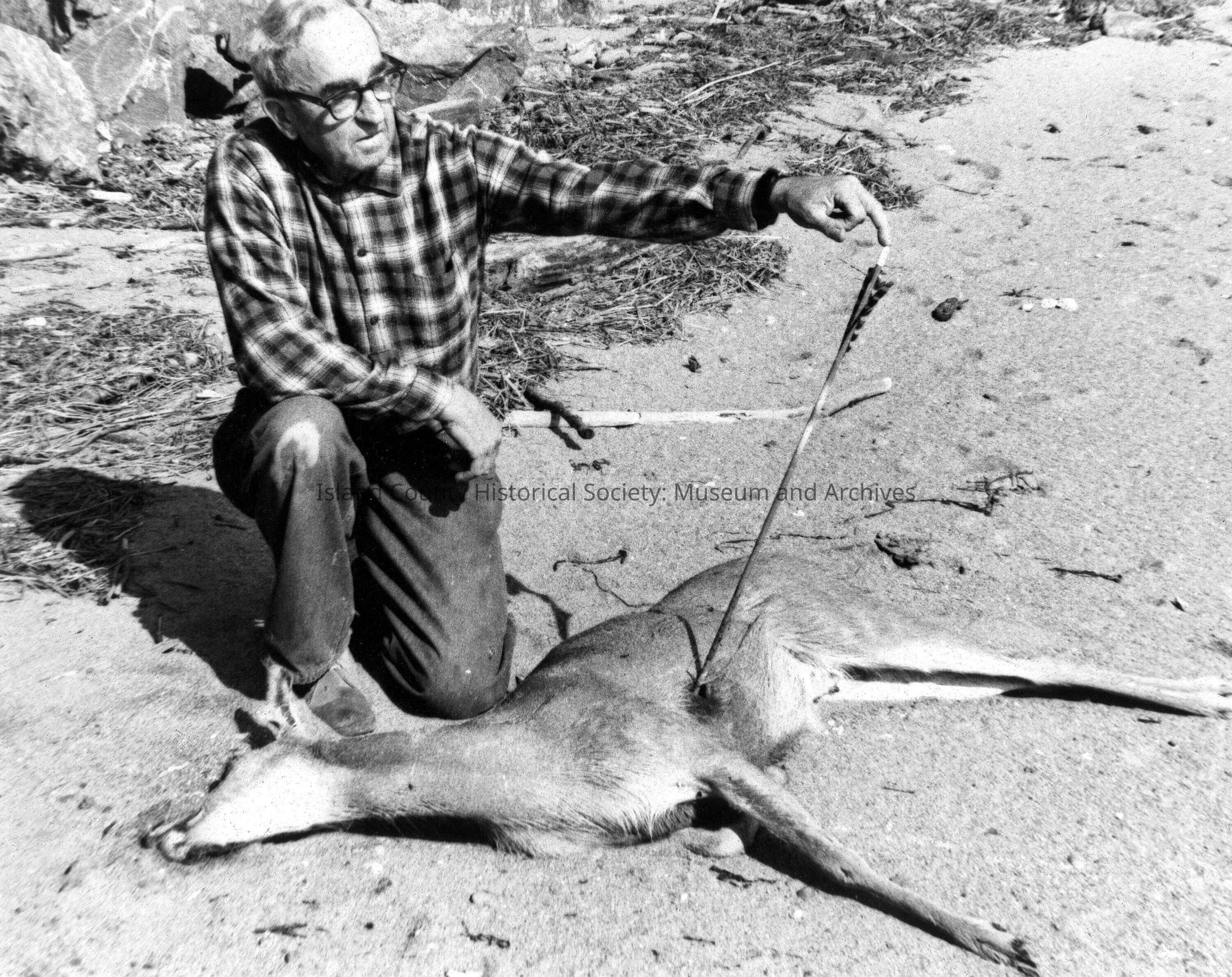 b/w photo Harry Hanson with deer.