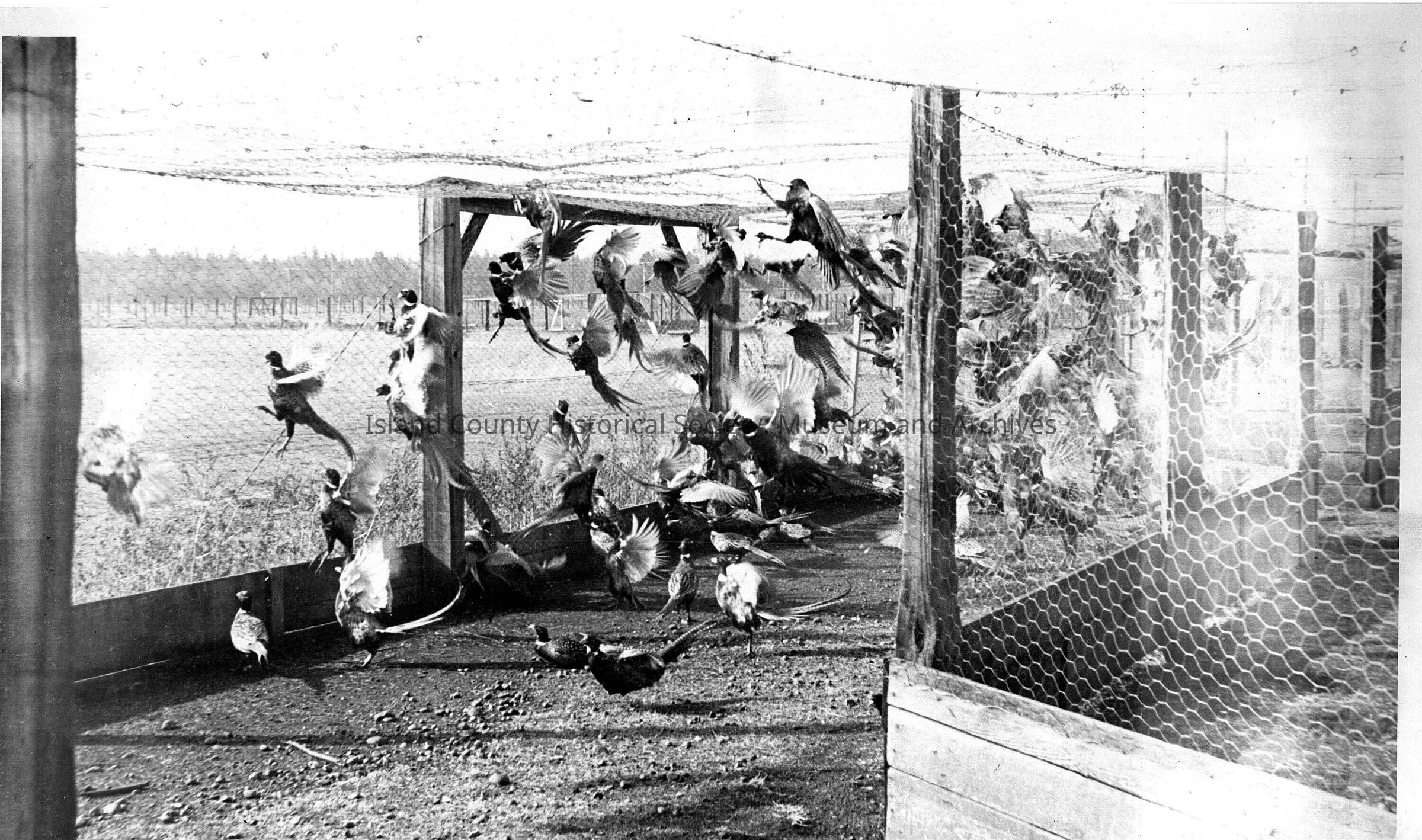 faded sepia photo of pheasants