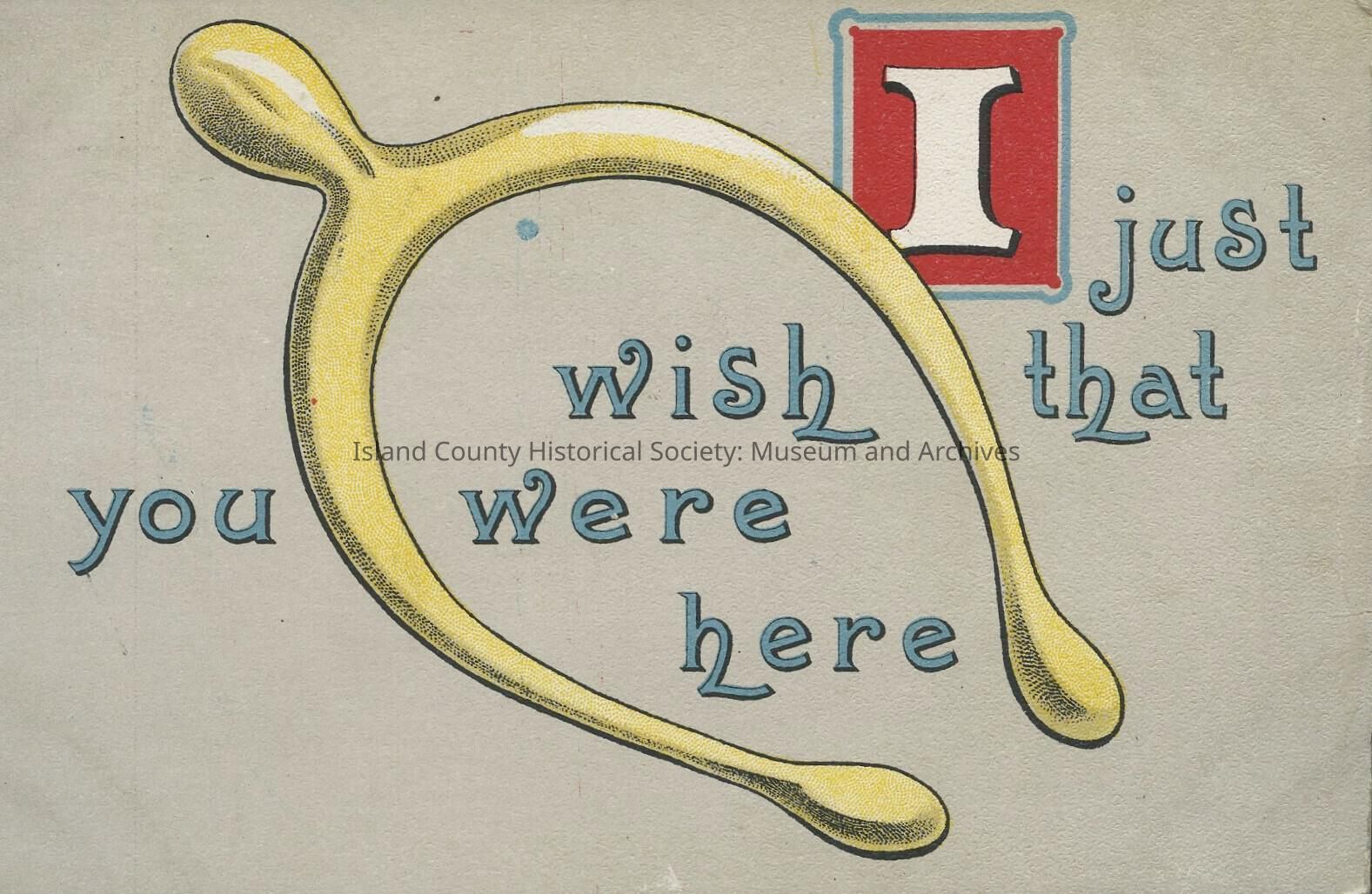 I just wish that you were here postcard with a wishbone illustration