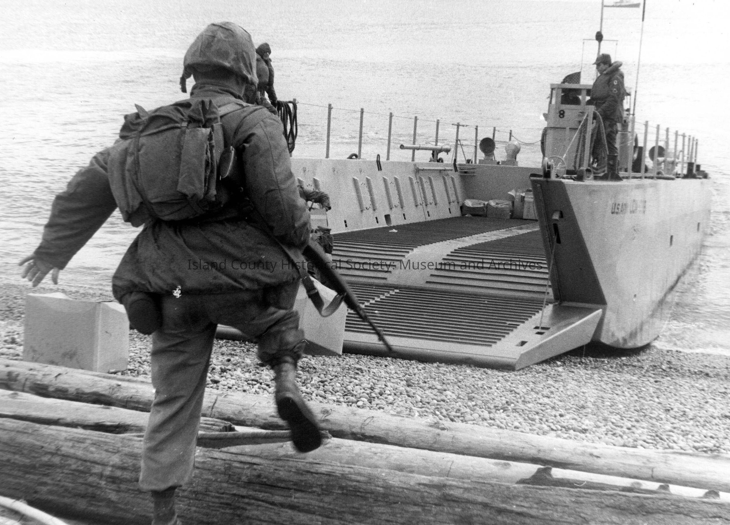 Soldier entering landing craft