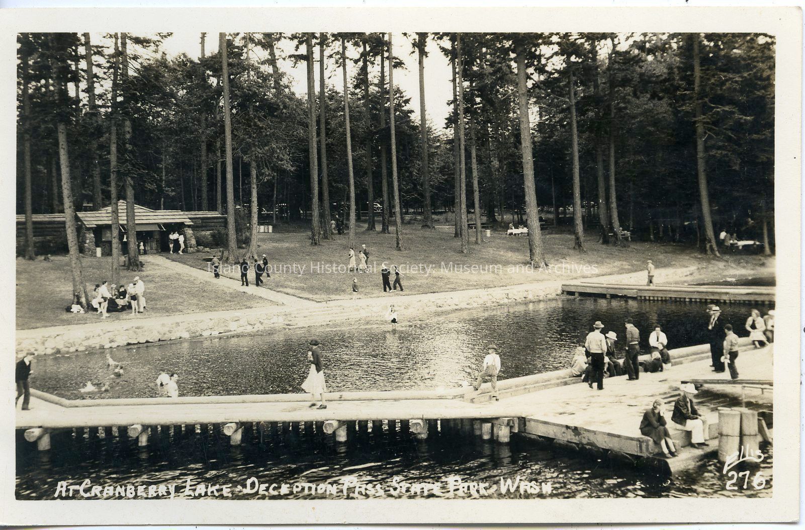 Cranberry Lake at Deception Pass State Park; on back: "East end of Cranberry Lake. I took lifesaving class off this dock in 1952. It was there in 1947. This is an Ellis photo which makes it late 1940s"Collection