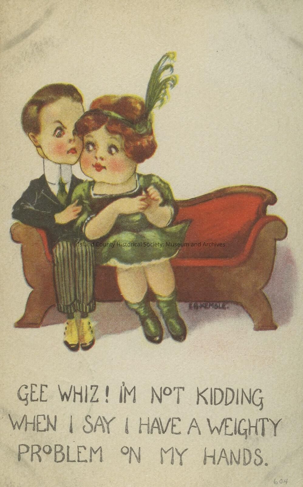 Gee I'm Not Kidding When I Say I've Got A Weighty problem On My Hands card with an illustration of a cople on the front.
