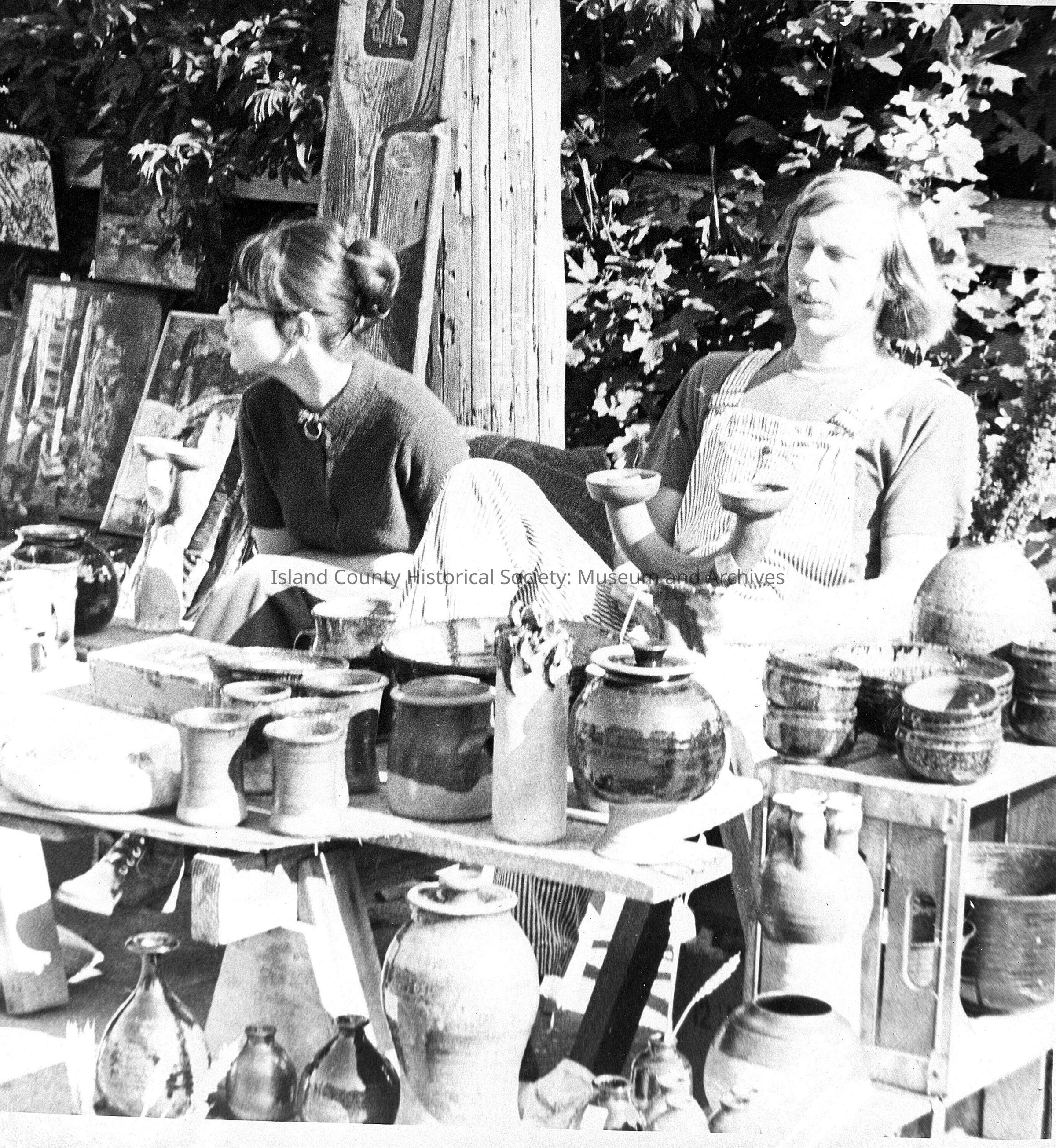 sepia photo of pottery booth