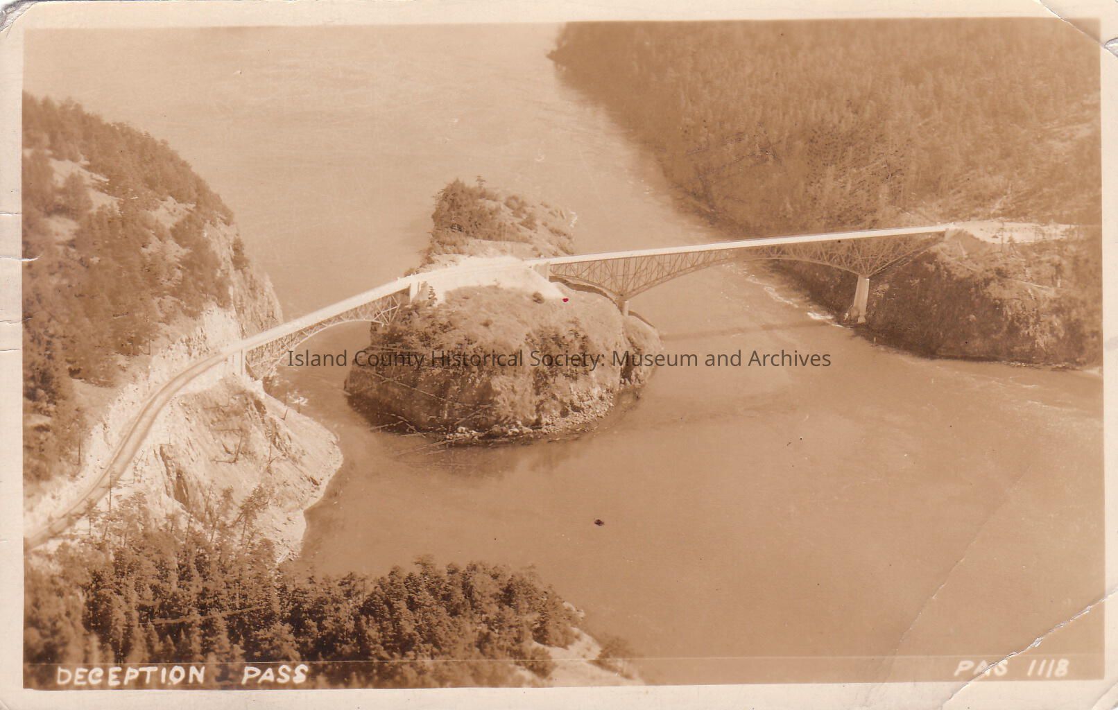 Deception Pass. Aerial view form alomost over Pass Island.