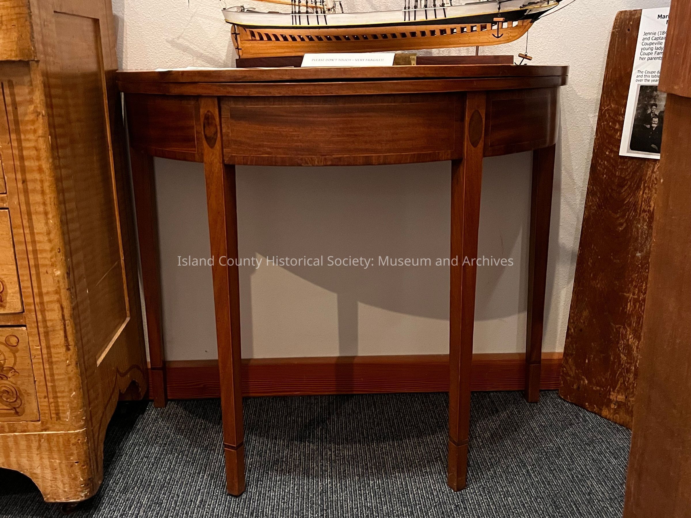 This elegant side table can be unfolded into a card table. It is rumored to have belonged to Captain Thomas Coupe, but we have not been able to find evidence of this.