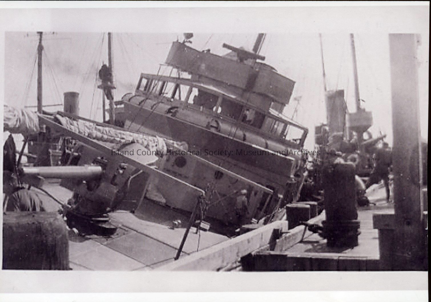 This ship collided with the transport ship "Henderson" in the fog of Admiralty Inlet. "Henderson" was carrying President Warren G. Harding to Seattle. After the collision, the "Zeilin" began to sink but was towed to Fort Casey until emergency repairs could be made and was later towed to Bremerton.Photograph Details
