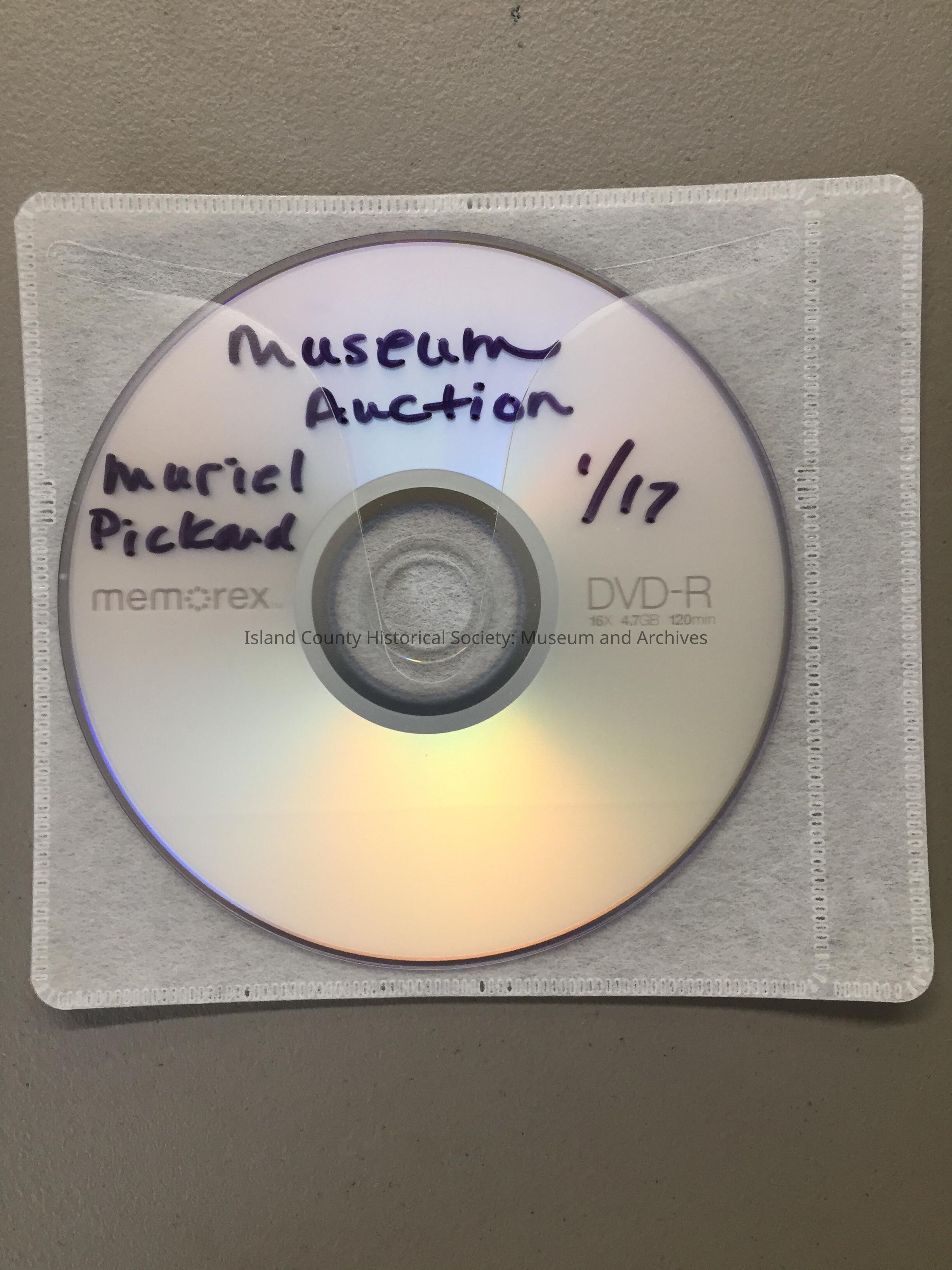 CD of the ICHS Museum Auction on 21 January 2017 at the Oak Harbor Elks Club. The guest of honor was Muriel Pickard. The auction also celebrated the 25th Anniversary of the building on Alexander Street in Coupeville. The photos were taken by Judy Lynn. The CD is in the Media box.Made/Created