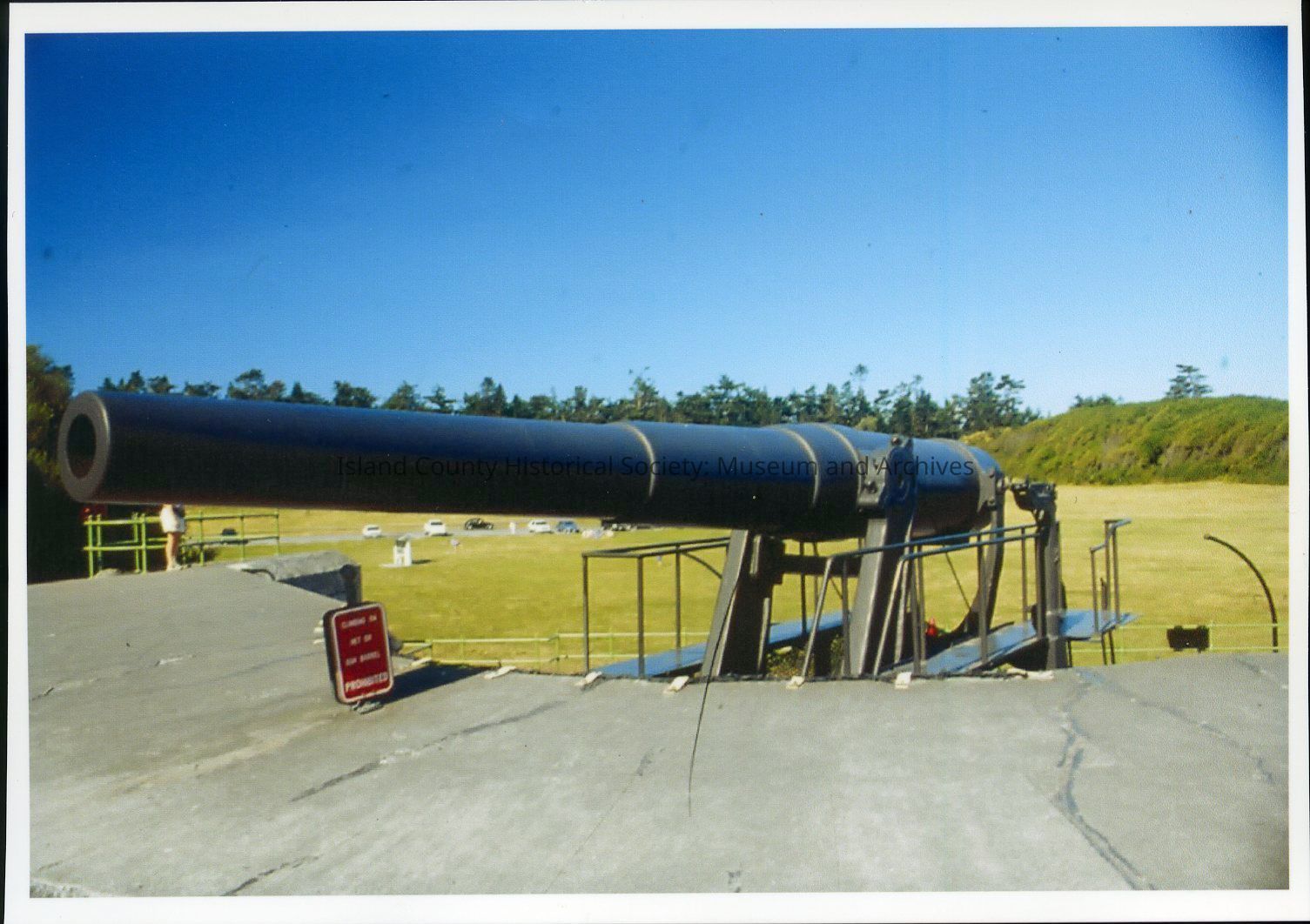 Photograph of a 10-inch disappearing rifle at Fort Casey, c. 1980s. This gun was brought to Fort Casey from Fort Wint in the Philippines in 1968.Photograph Details