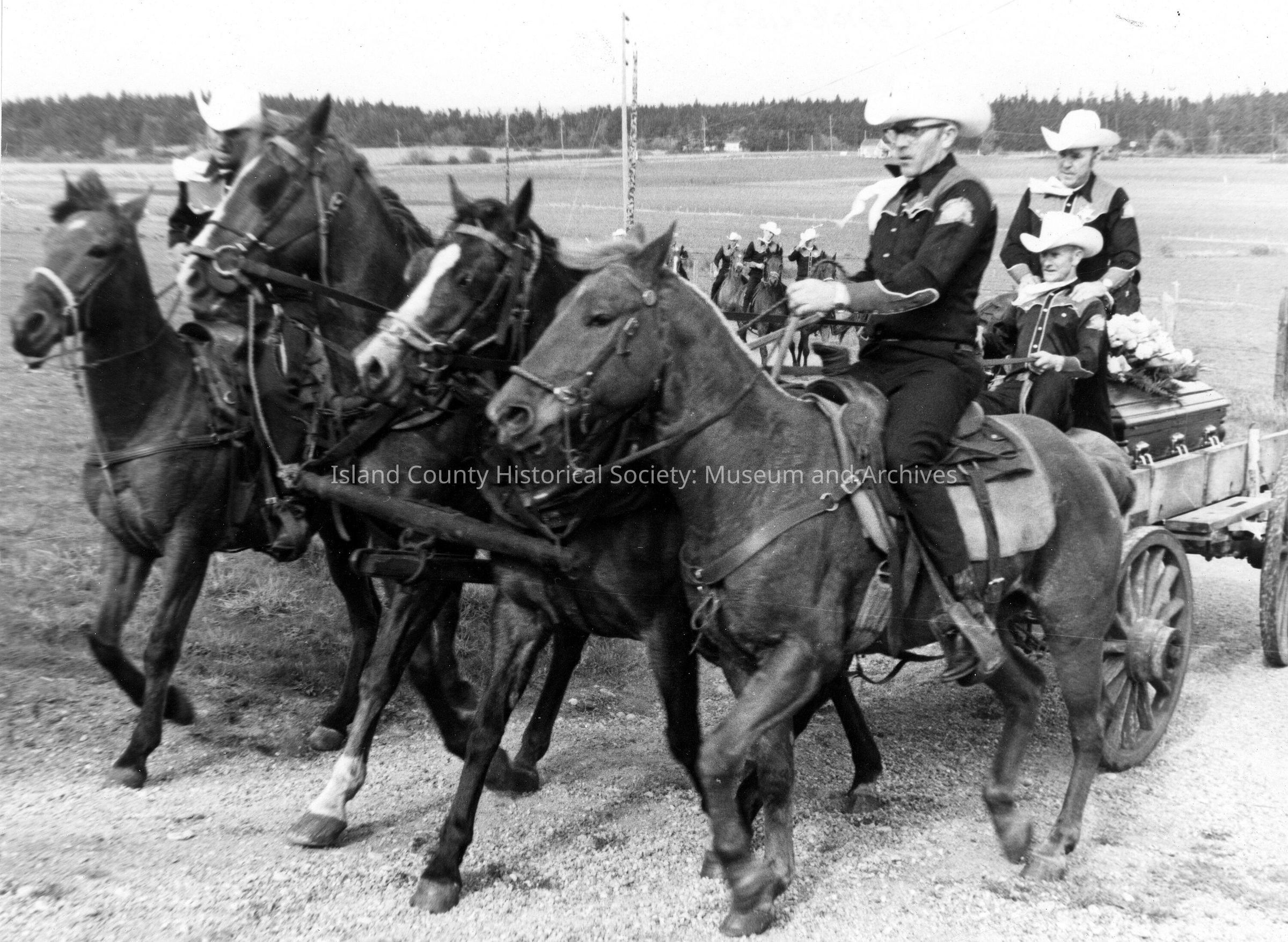 Front view of procession with horses