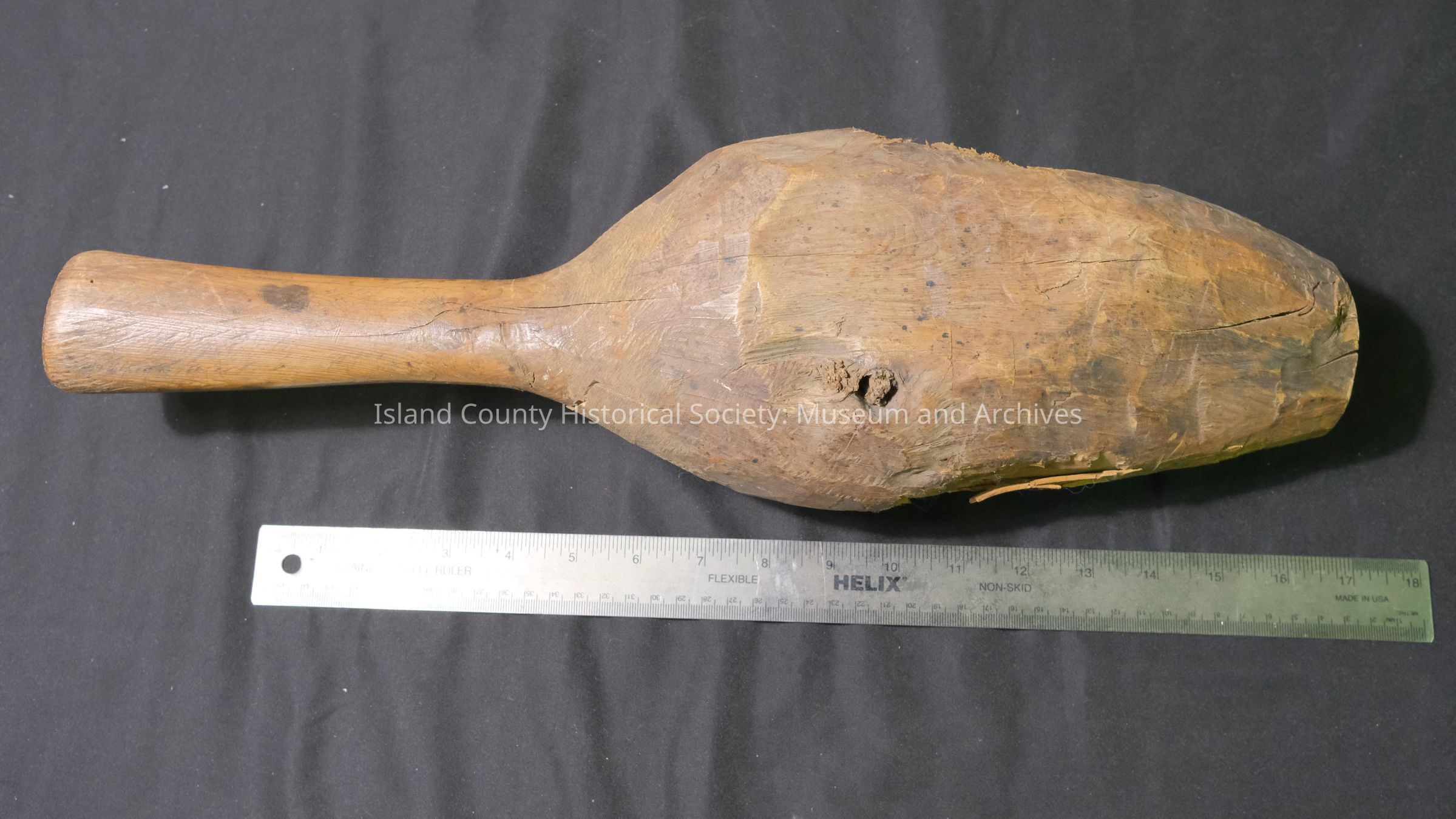 Used with froe (Accession #1950-12). The froe was placed on the cedar log and struck w/ the mallet, splitting off the shakes.