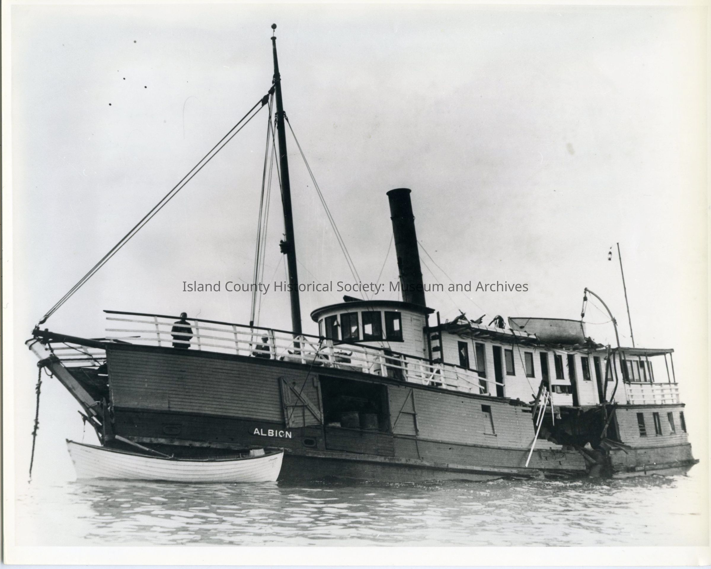 On back: "Albion, built in Coupeville by Capt. H.B. Lovejoy 1898. Passenger and freight, 149 tons 94 ft. First steamer with regular route between Coupeville and Seattle. Collision with steamer Chippewa in 1910 heavy damage, 1924 converted to cannery tender and oil tanker. Destroyed in 1924 by fire."Collection