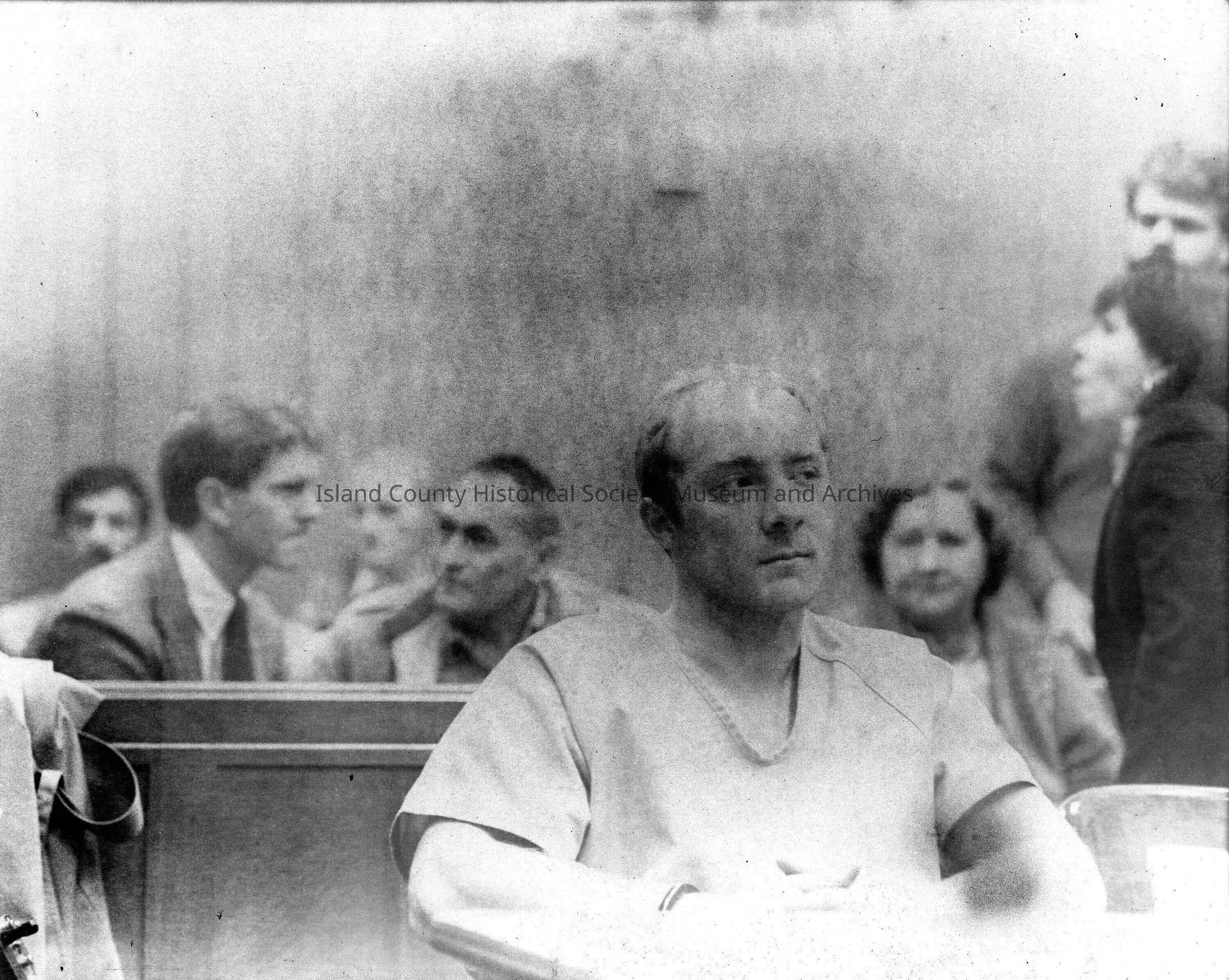 Sepia print of Darrin Hutchinson in the courtroom
