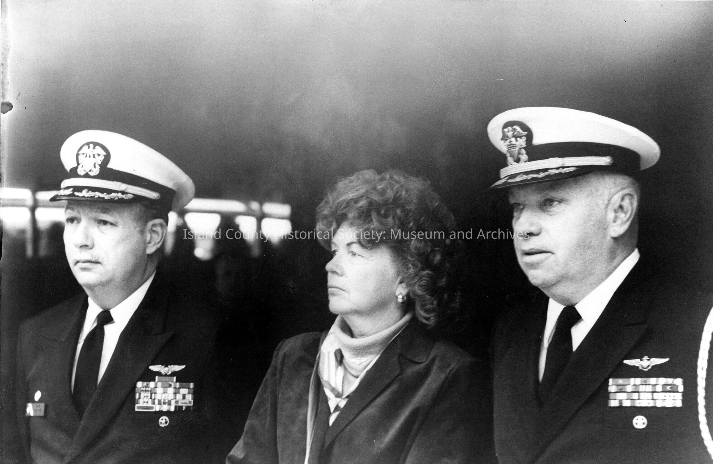 sepia print of two Naval officers and unknown woman
