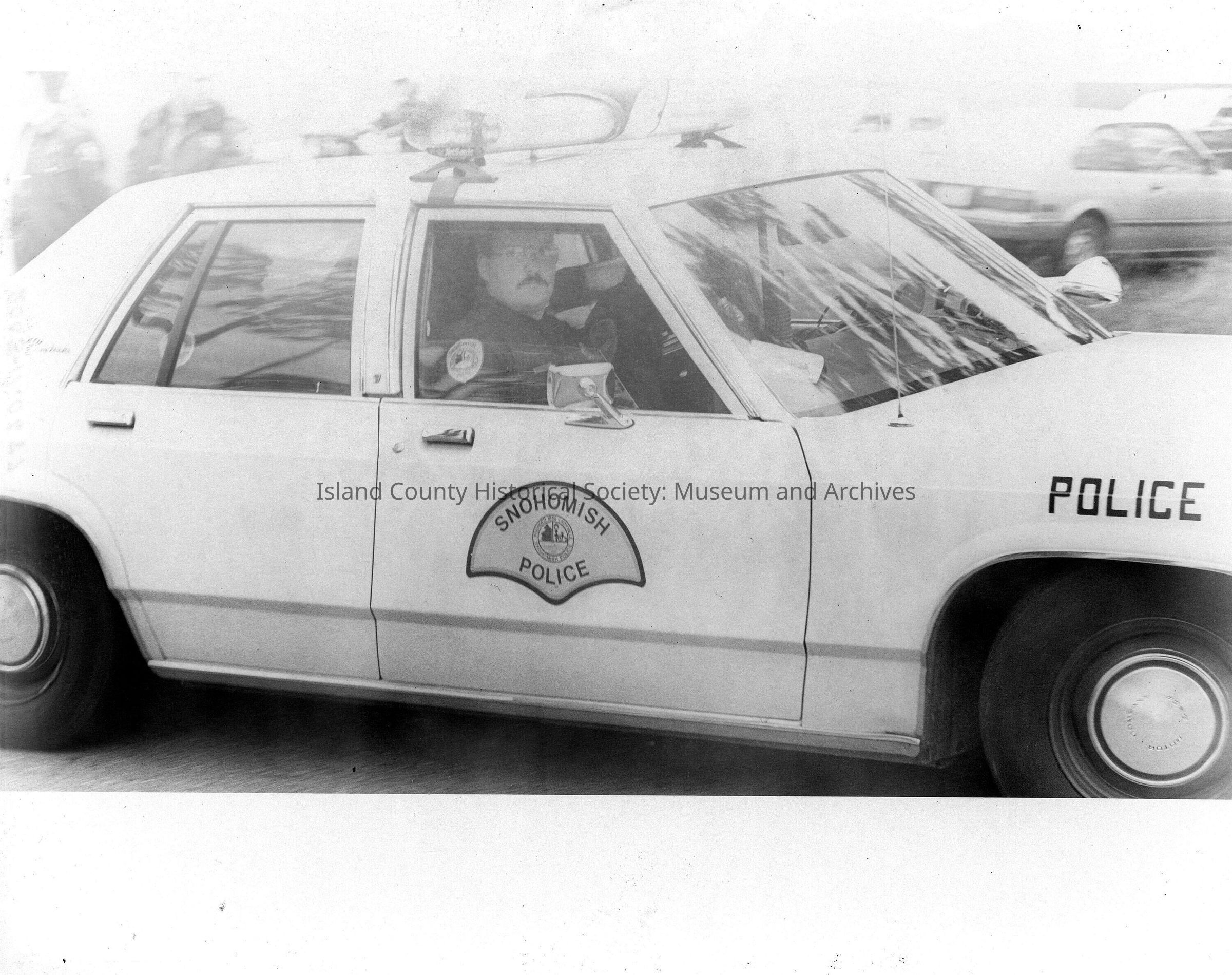 sepia print of Snohomish County Police car