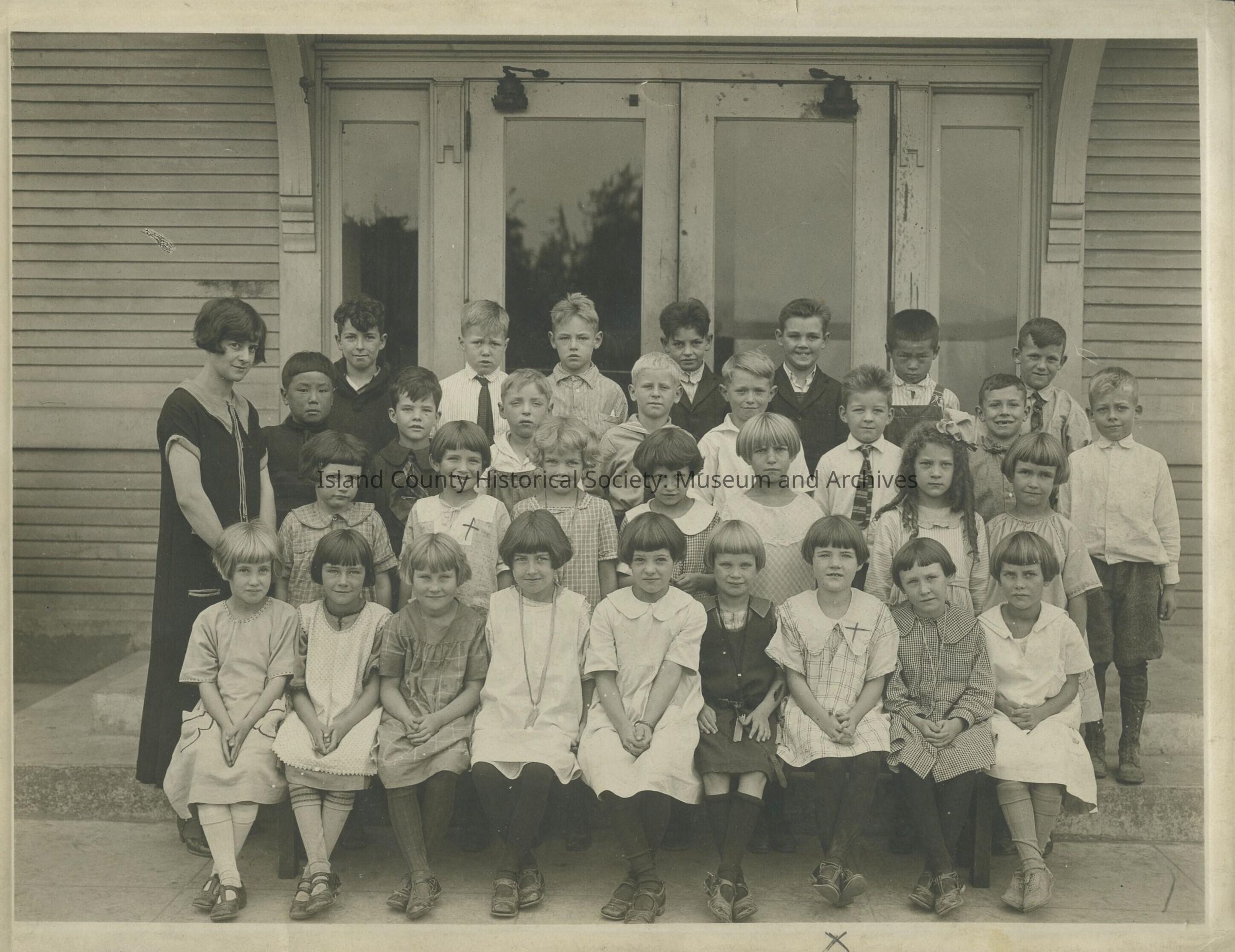 A photo of Ruth Irene Montgomery and her classmates at their schoolhouse in South Whidbey. Ruth Irene Montgomery is the grandaughter of Dave MackieCollection