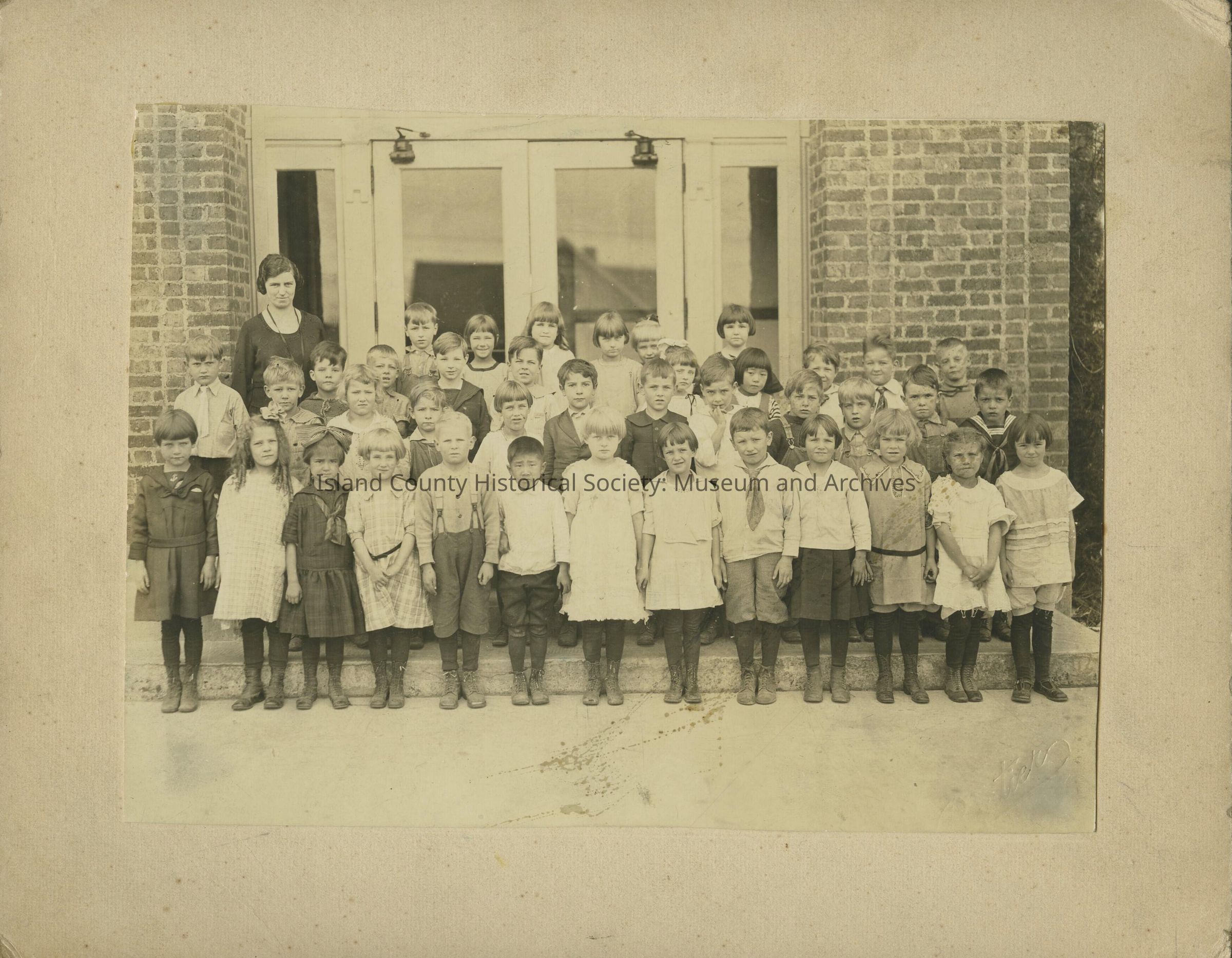 A photo of Ruth Irene Montgomery and her classmates at their schoolhouse in South Whidbey. Ruth Irene Montgomery is the grandaughter of Dave MackieCollection