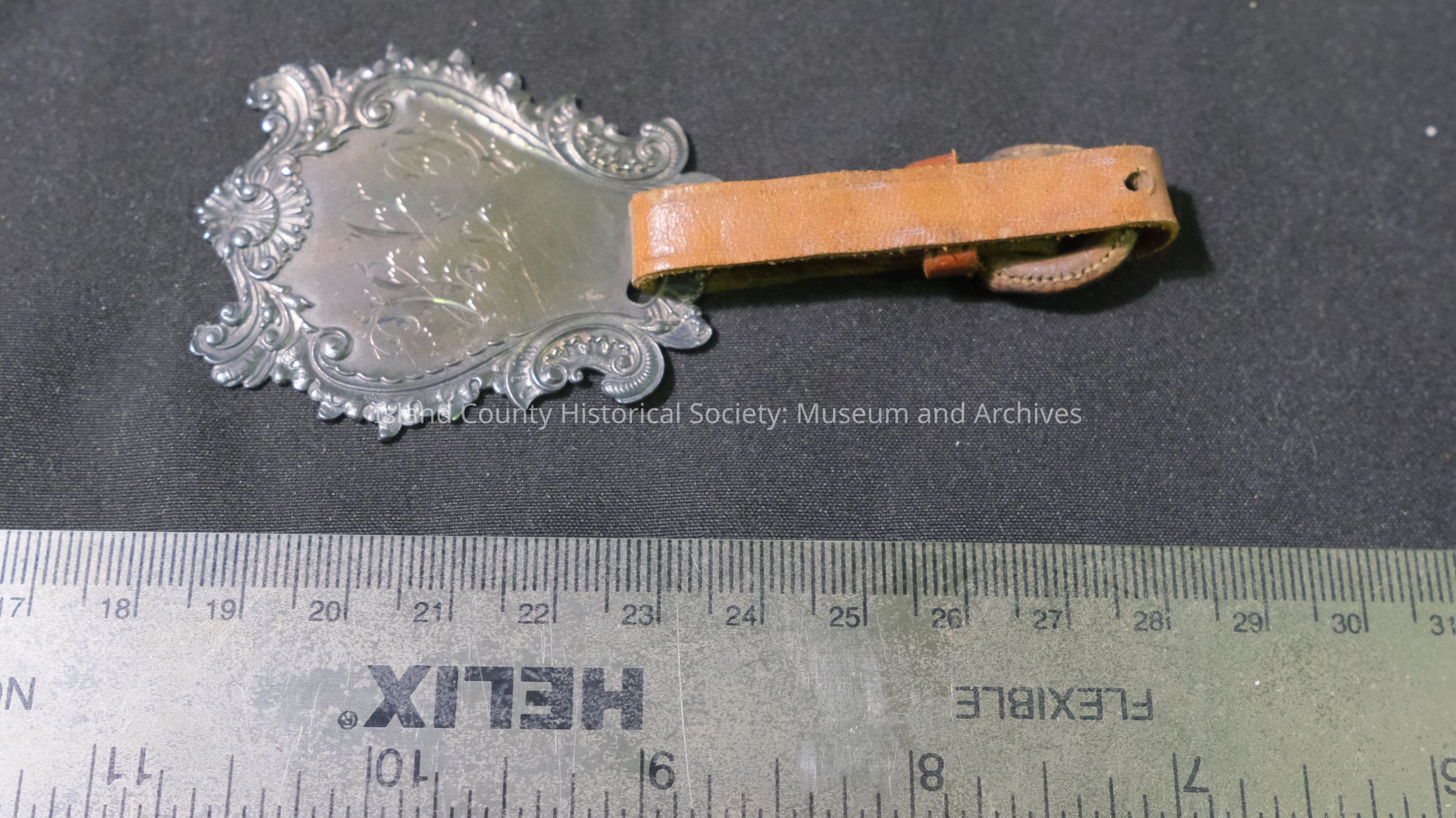Sterling silver identification tag. Initials "EJH." Ornamental. Used by Ruby Hancock.