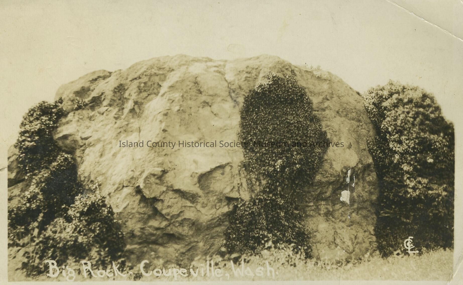 A post card with a photo of the Big Rock, Coupeville Wa from Leona Libbey to Frank Little.