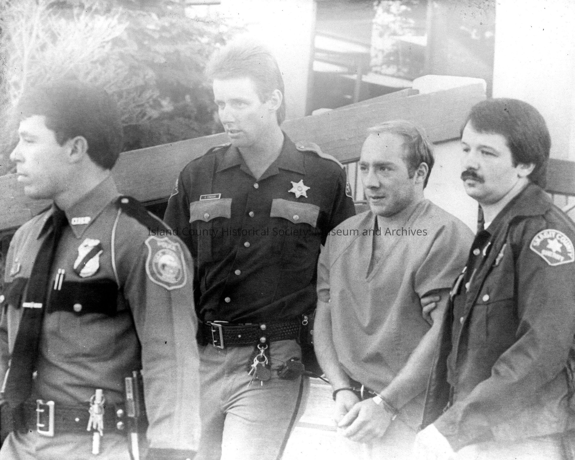 two sepia prints of Darrin Hutchinson escorted to courtroom