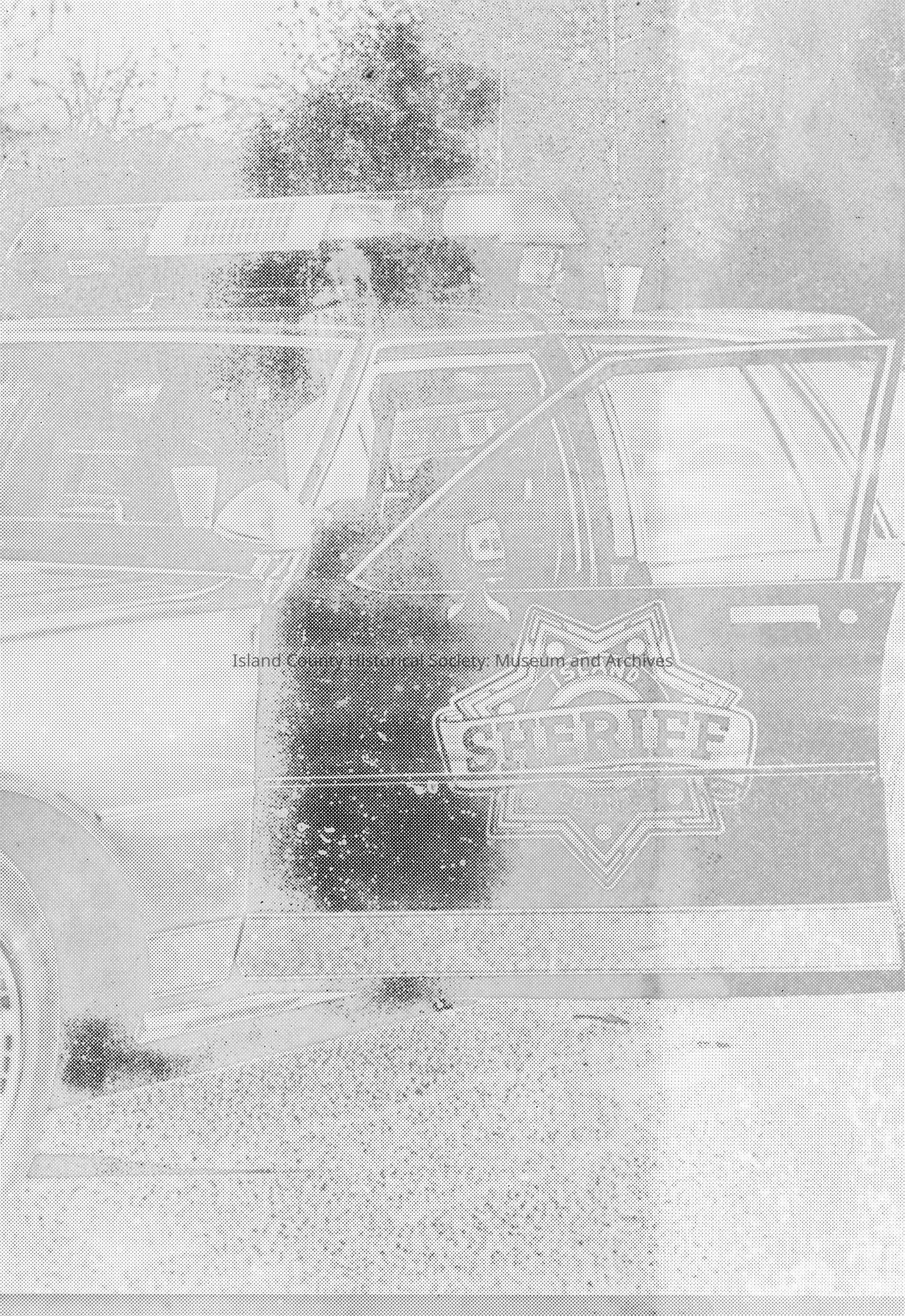 faded, smeared sepia print of sheriff's car