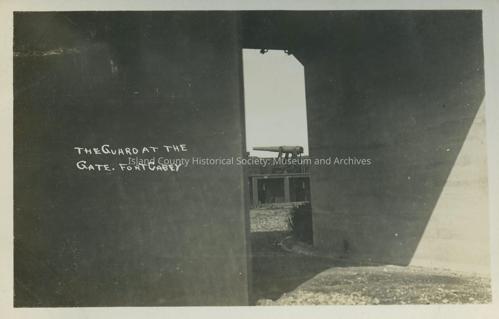 Postcard from Fort Casey. Photo is of the guard at the gateCollection