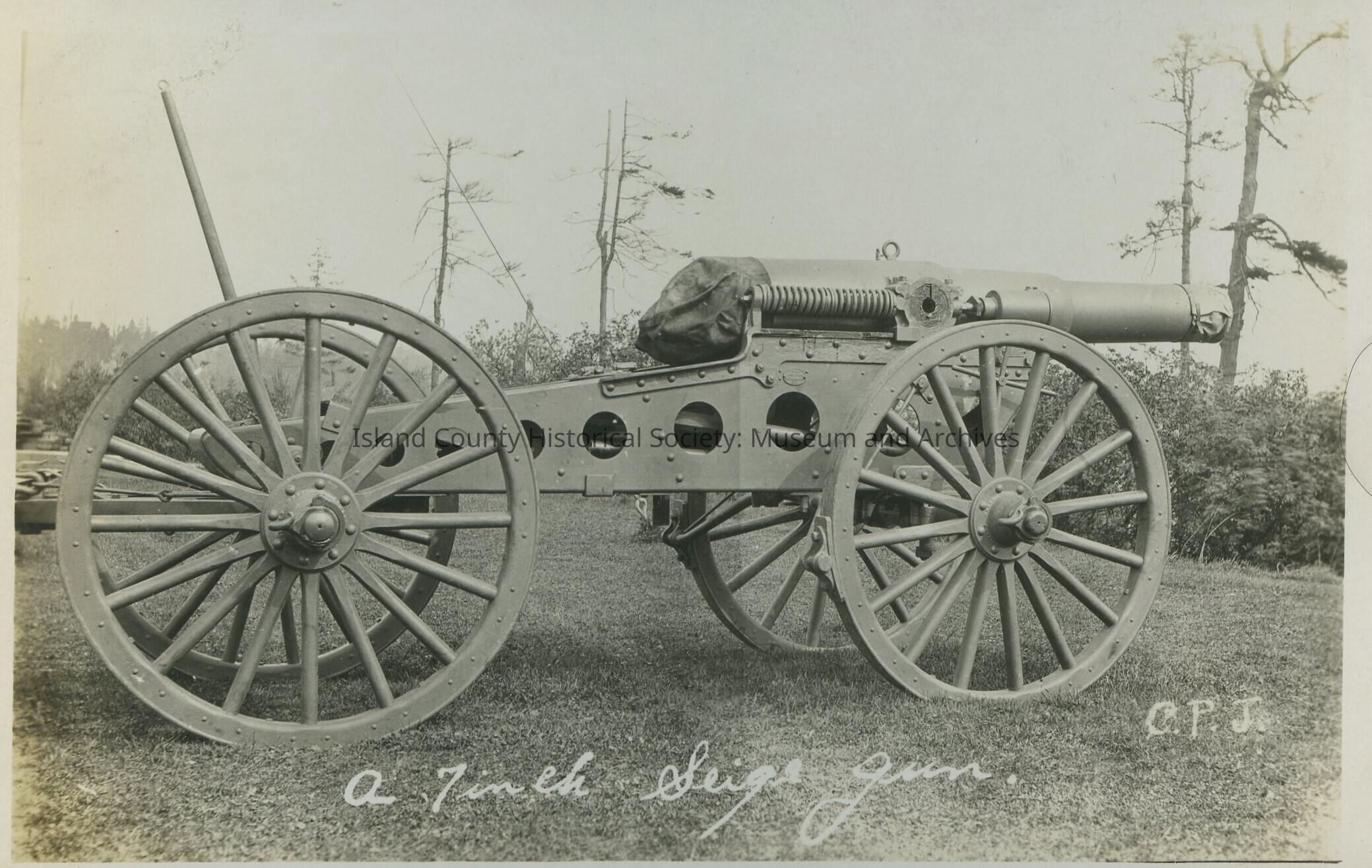 Postcard from Fort Casey. Photo is of a " 7 inch seige gun"Collection